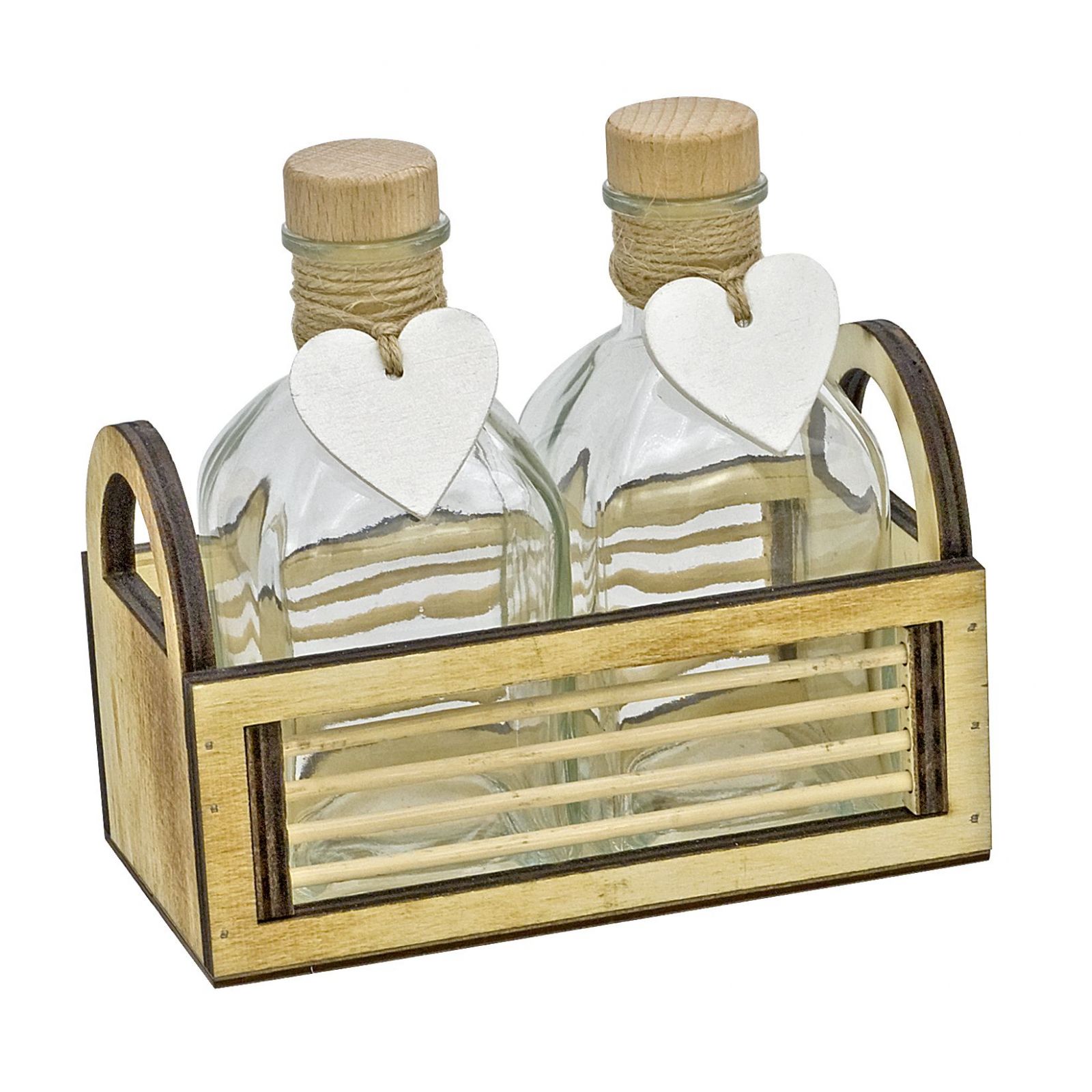 Se stai cercando una bomboniera unica e dal design accattivante, il nostro cestino in legno naturale con due bottiglie in vetro, tappo in sughero e cuoricino bianco legato con spago è l'idea perfetta per il tuo evento speciale. Questo elegante oggetto si adatta perfettamente ai matrimoni, comunioni e anniversari,, rappresentando un gesto economico, ma allo stesso tempo raffinato e significativo. Le bottigliette possono essere utilizzate come oliera o acetiera, aggiungendo un tocco funzionale alla decorazione della tavola.