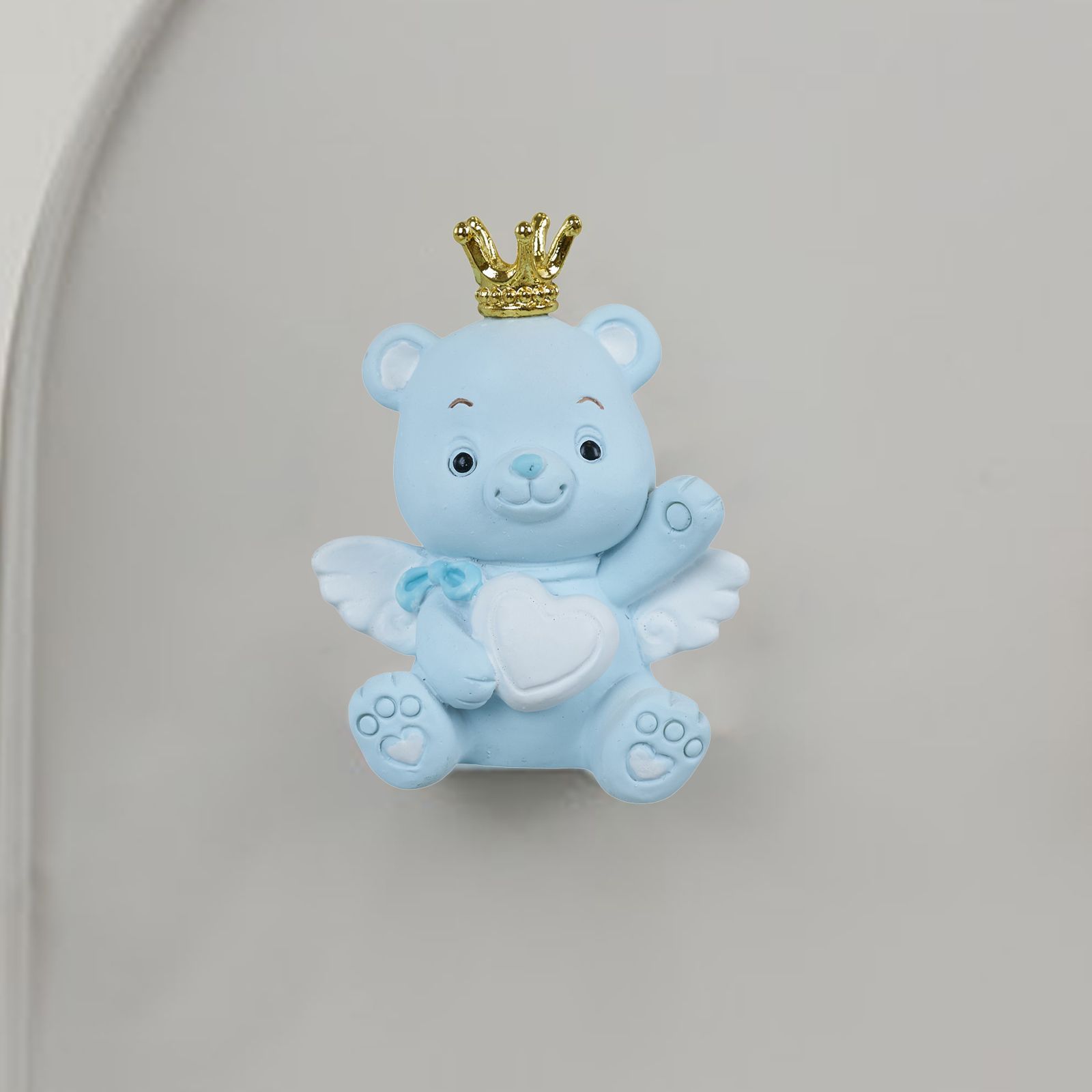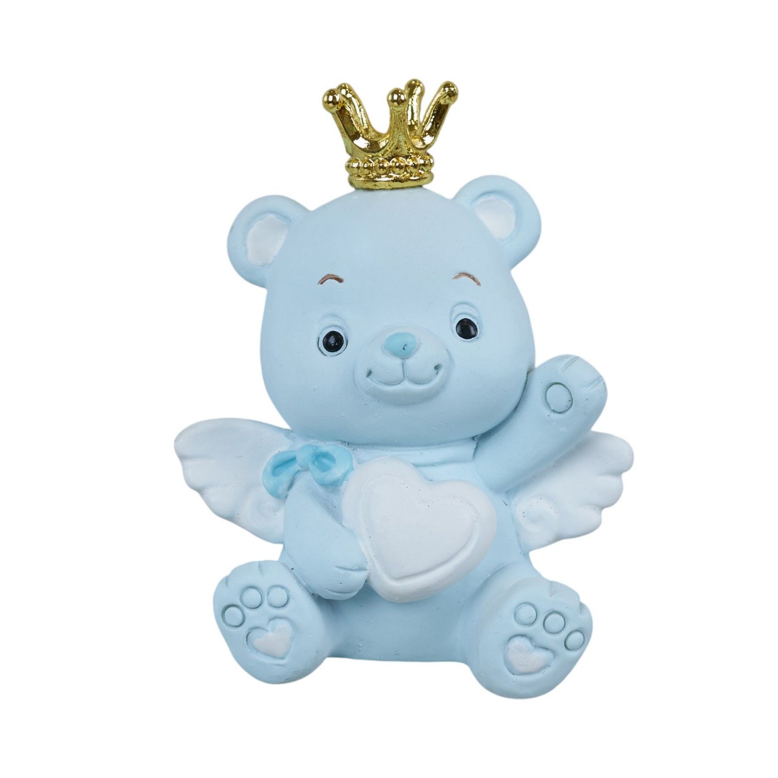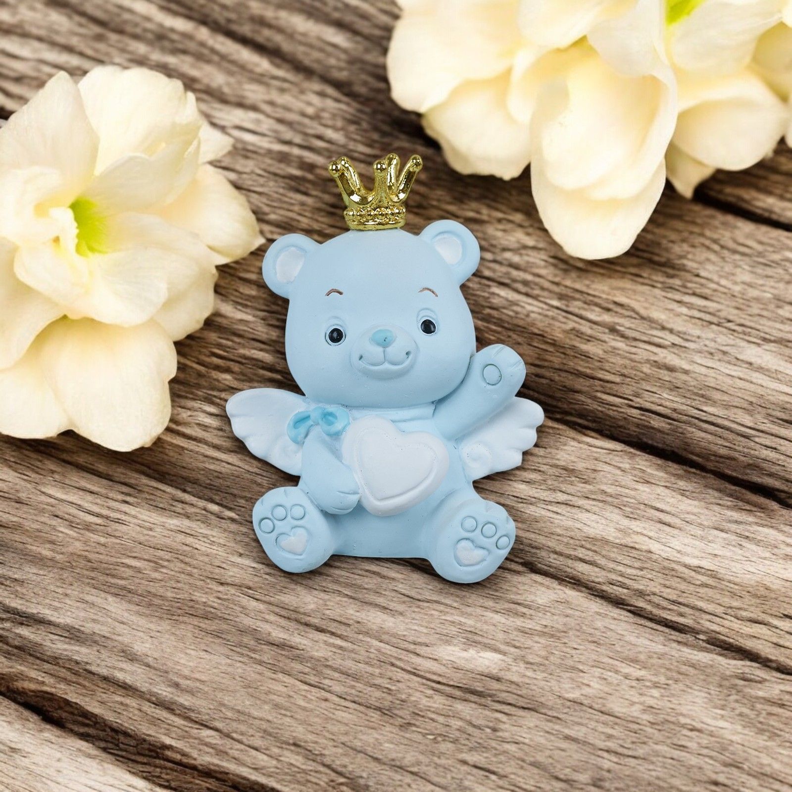 In occasione di eventi speciali come la nascita, il battesimo, il compleanno o il baby shower, sorprendi i tuoi invitati con il magnete orsetto con corona e cuore. Questa bomboniera in resina celeste e bianca, con una corona dorata, è ideale per celebrare la nascita di un maschietto in modo originale e particolare.