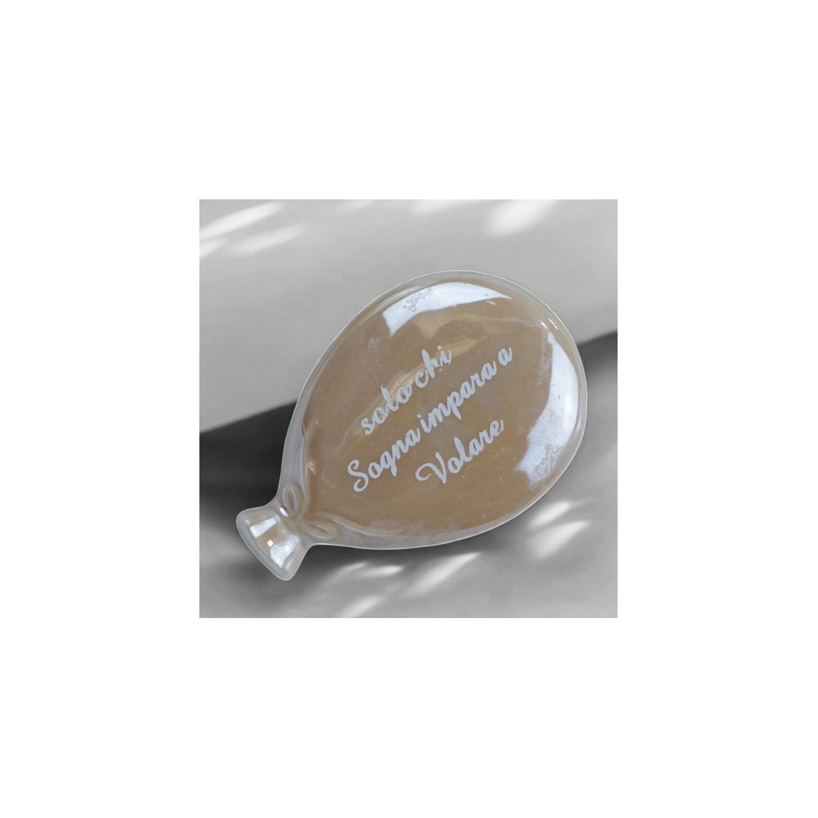 Particolare e originale, questo magnete a forma di palloncino con la frase "Solo chi sogna impara a volare" è l'ideale per dare un tocco speciale ai tuoi eventi.