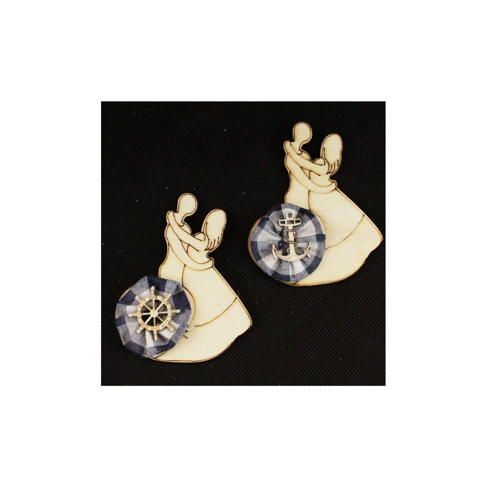 Magnete con coppia di sposi in legno, ideale per confettate e bomboniere, disponibile online a prezzo speciale! Queste calamite eleganti, con fiocco bianco e icona in legno in due varianti: Ancora e Timone, sono perfette per nascite, battesimi, compleanni, matrimoni, e anniversari.