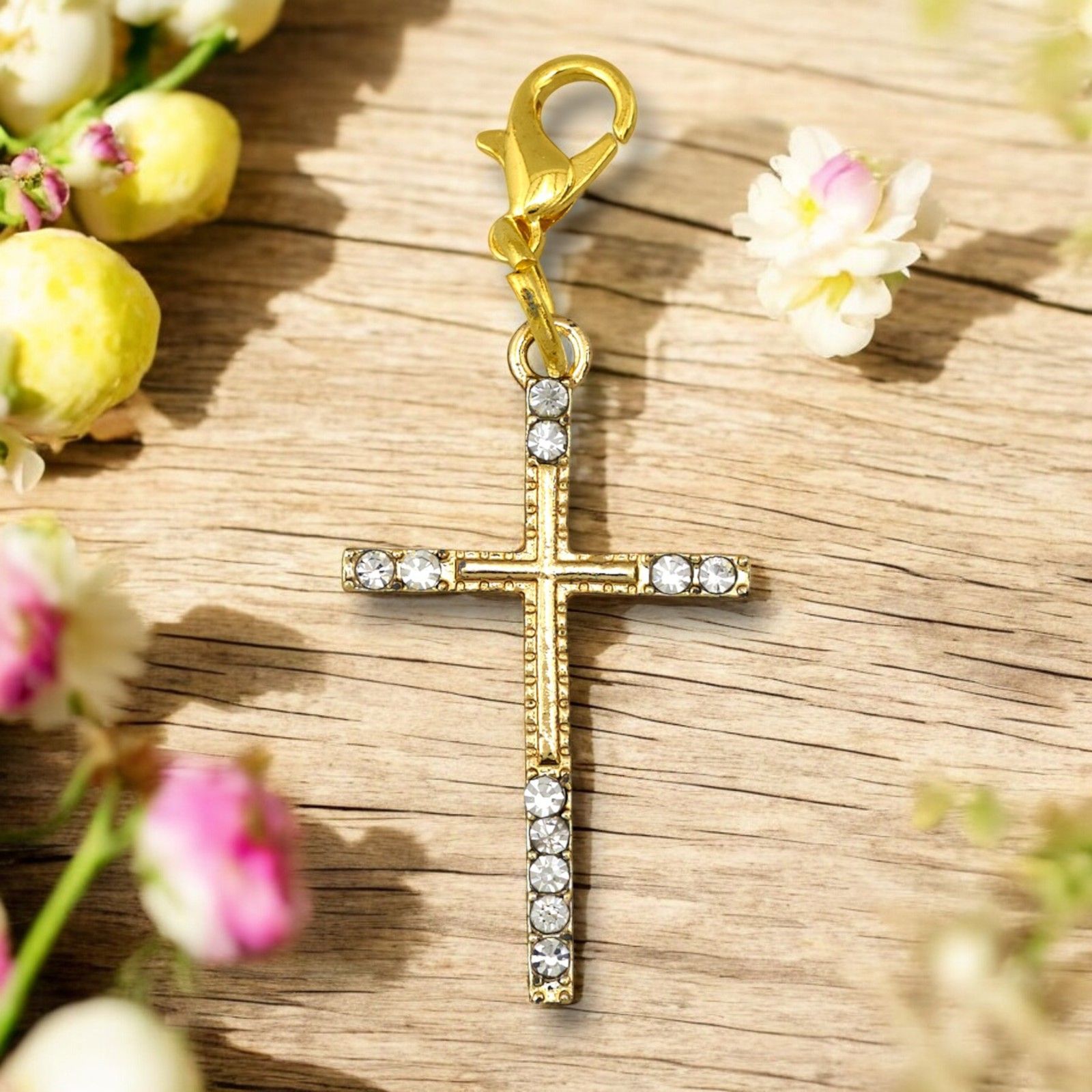 Regala un momento di gioia e bellezza ai tuoi invitati con questo ciondolo a forma di croce con strass, un'idea originale e affascinante per rendere indimenticabile ogni occasione speciale.