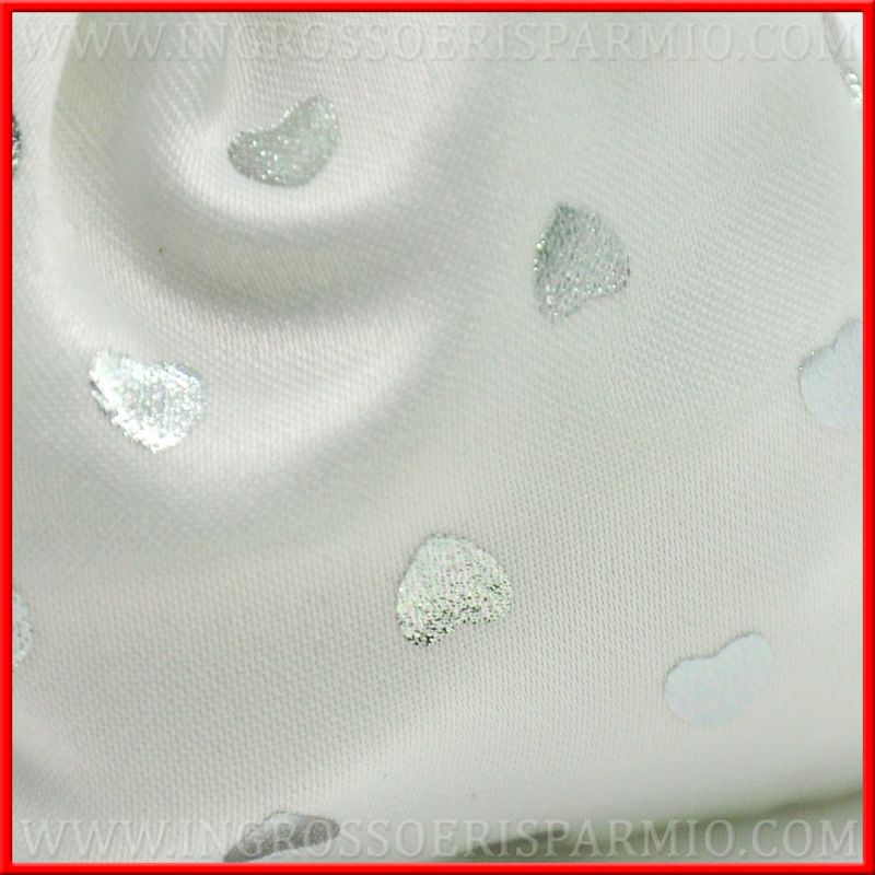 I sacchettini per confetti in raso sono decorati da cuoricini lucidi argentati, che rendono questi portaconfetti specifici per l'evento nozze d'argento!