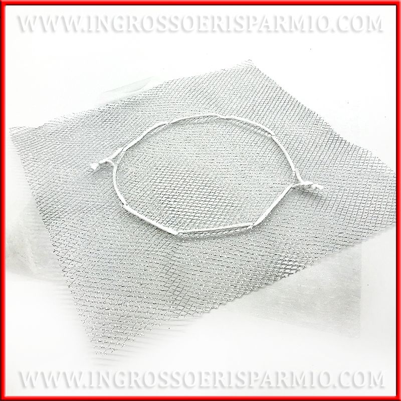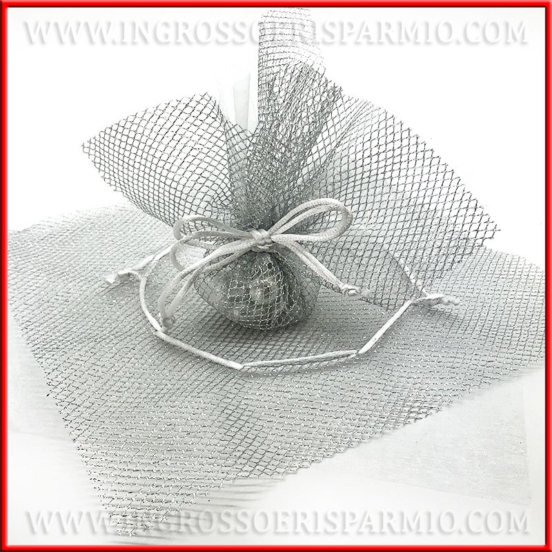 Sacchettini per confetti color argento a rete, con strato interno in tulle e tiranti, per una chiusura rapida e semplicissima: ideali per il fai da te!
