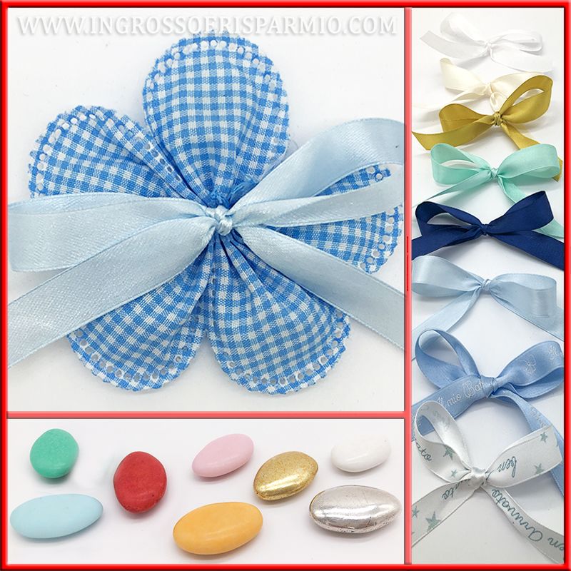 Se scegli l'opzione "SENZA CONFETTI" ti invieremo i nastri portaconfetti con 5 petali ed il nastro per il fiocco scelto, ma non assemblati, da completare per tuo conto!
