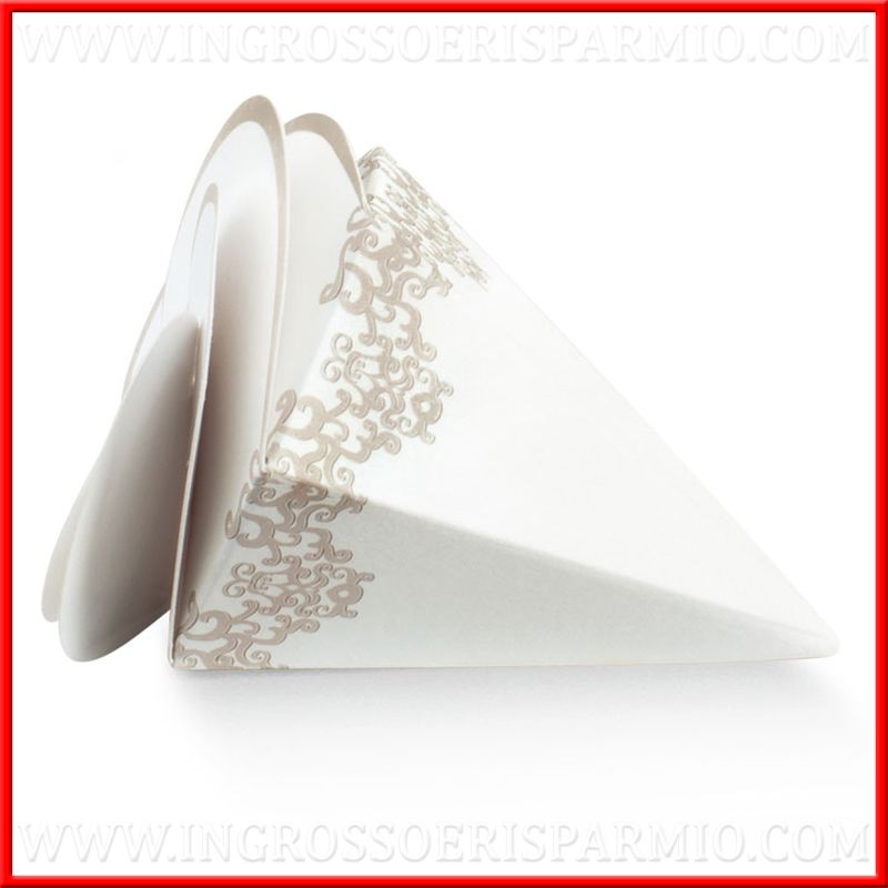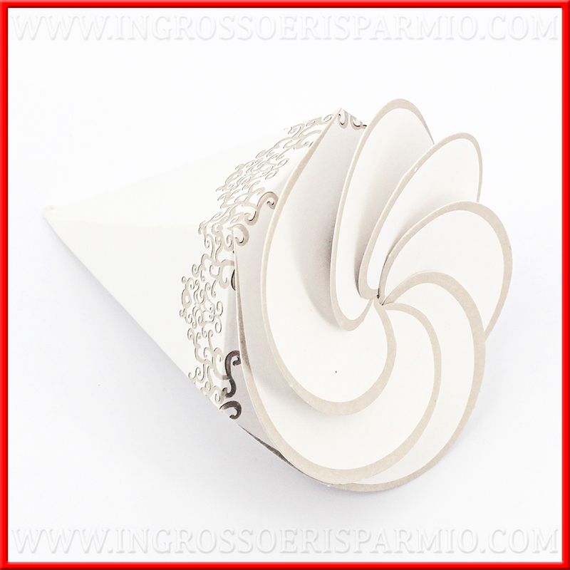 Cono confetti in carta rigido, per idee confettata matrimonio, ma da utilizzare anche scatolette per confetti a forma di coni per battesimo, comunione, cresima, ecc...