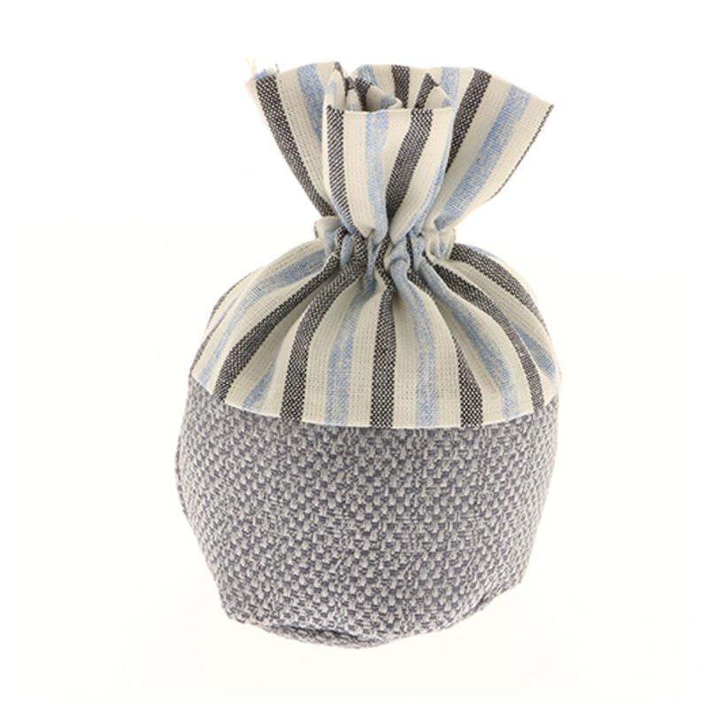 È il posto giusto! Nel nostro store per te, è disponibile questo sacchetto per confettata a base rotonda in stoffa, nelle tonalità del grigio perla per la base e con un motivo a righe bianche, grigie e azzurro polvere sulla parte superiore. Cordoncini tiranti inclusi.