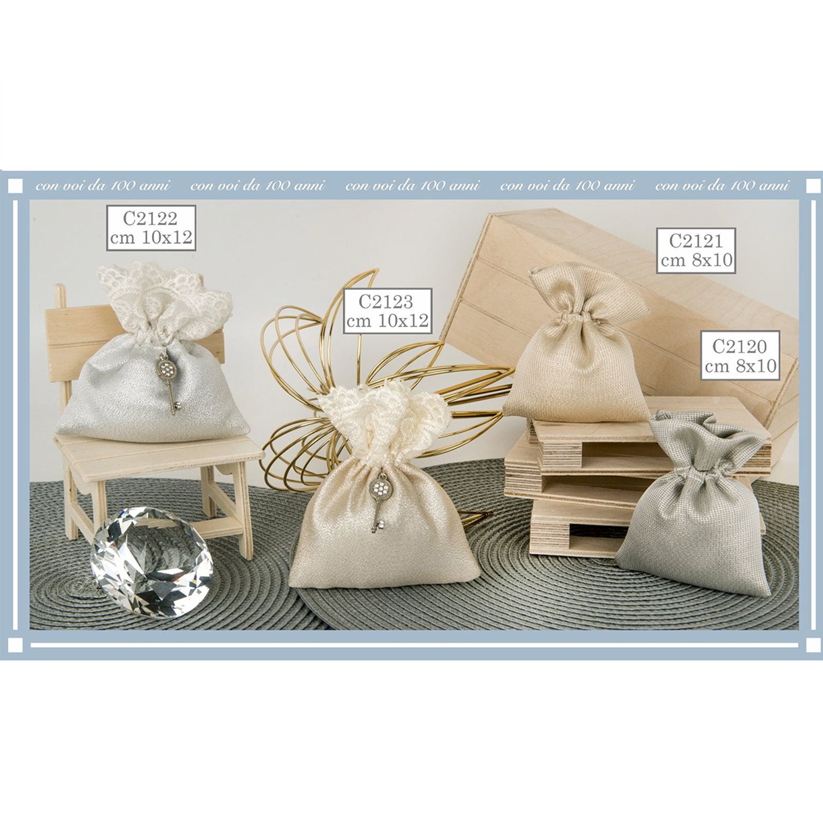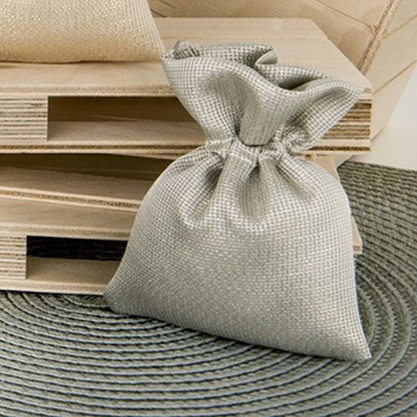 Sacchettini stoffa piccoli portaconfetti con tiranti nella tonalità silver/argento per confettata nozze argento, sacchetti bomboniere anniversario e portaconfetti fai da te per qualsiasi evento per cui è stato scelto l'argento come colore a tema.