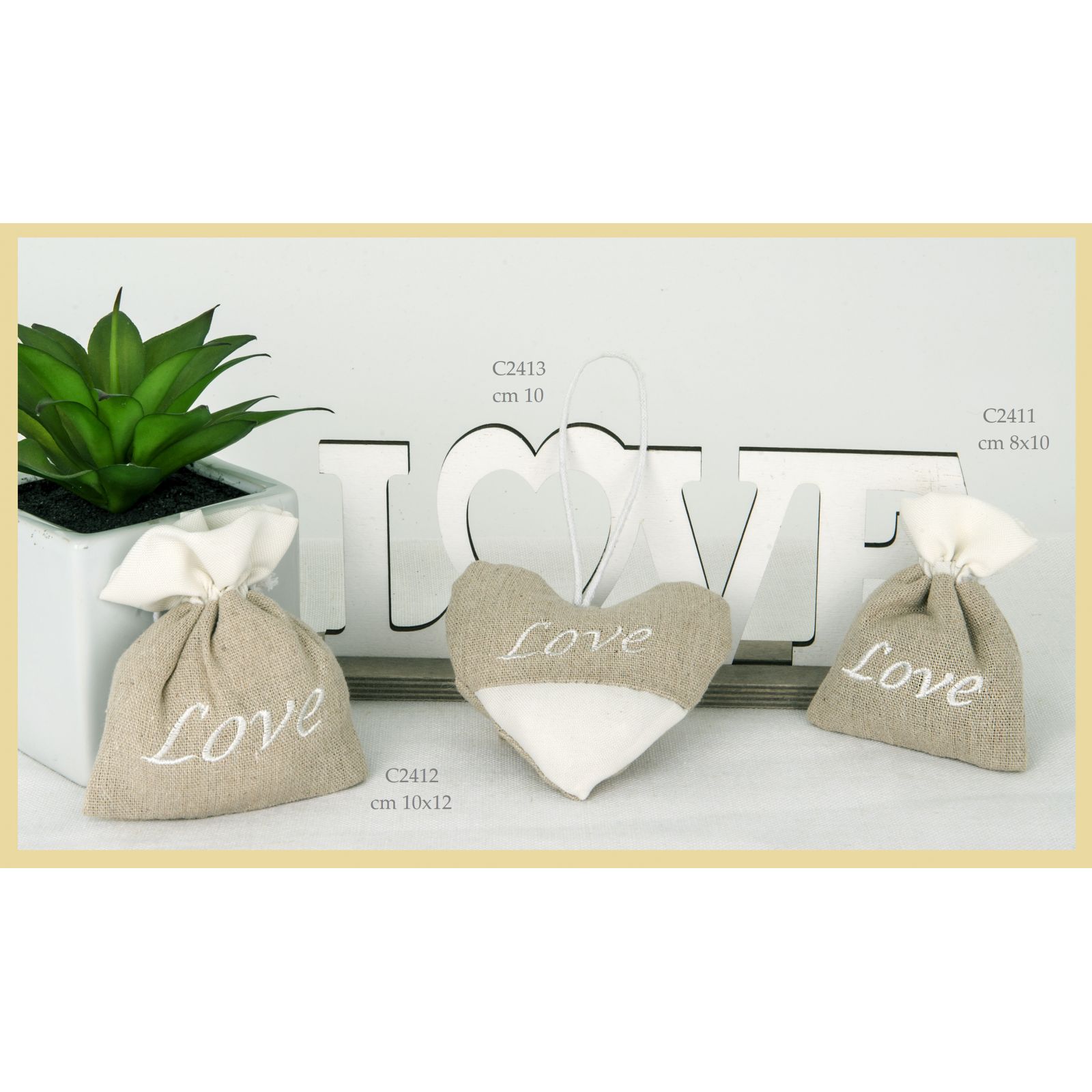 Aggiungi un tocco di dolcezza e romanticismo al tuo evento con questo originale portaconfetti a forma di cuore. Realizzato con cura, presenta una parte superiore avana e una parte inferiore bianca. Sul cuore è ricamata la scritta "Love". Con il suo design elegante e romantico, questo portaconfetti sarà un'aggiunta perfetta al tuo matrimonio o anniversario.