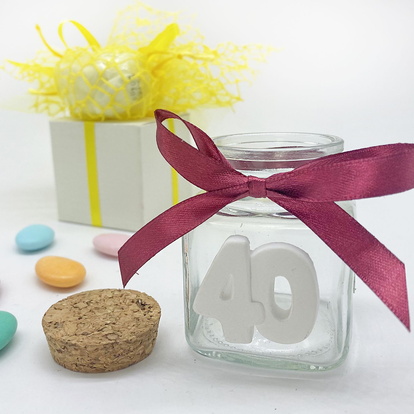 Celebra il loro 40° compleanno, anniversario o traguardo professionale con il nostro Vasetto Portaconfetti con Gessetto Numero 40.