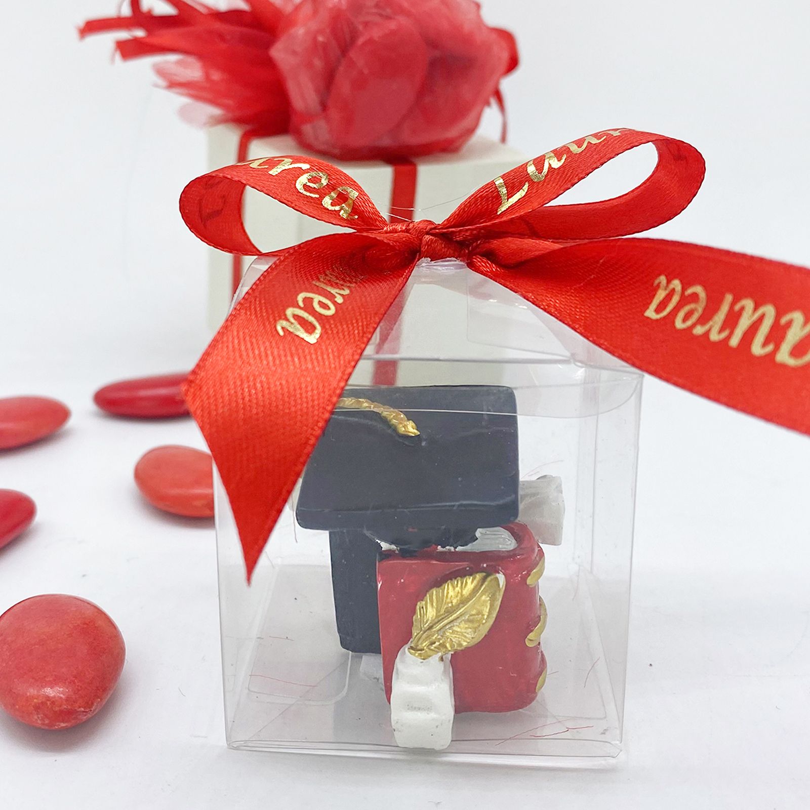 Donare questa scatolina trasparente con ricordini laurea è un modo tangibile per condividere la gioia e la felicità del laureato in questa tappa significativa del suo percorso.