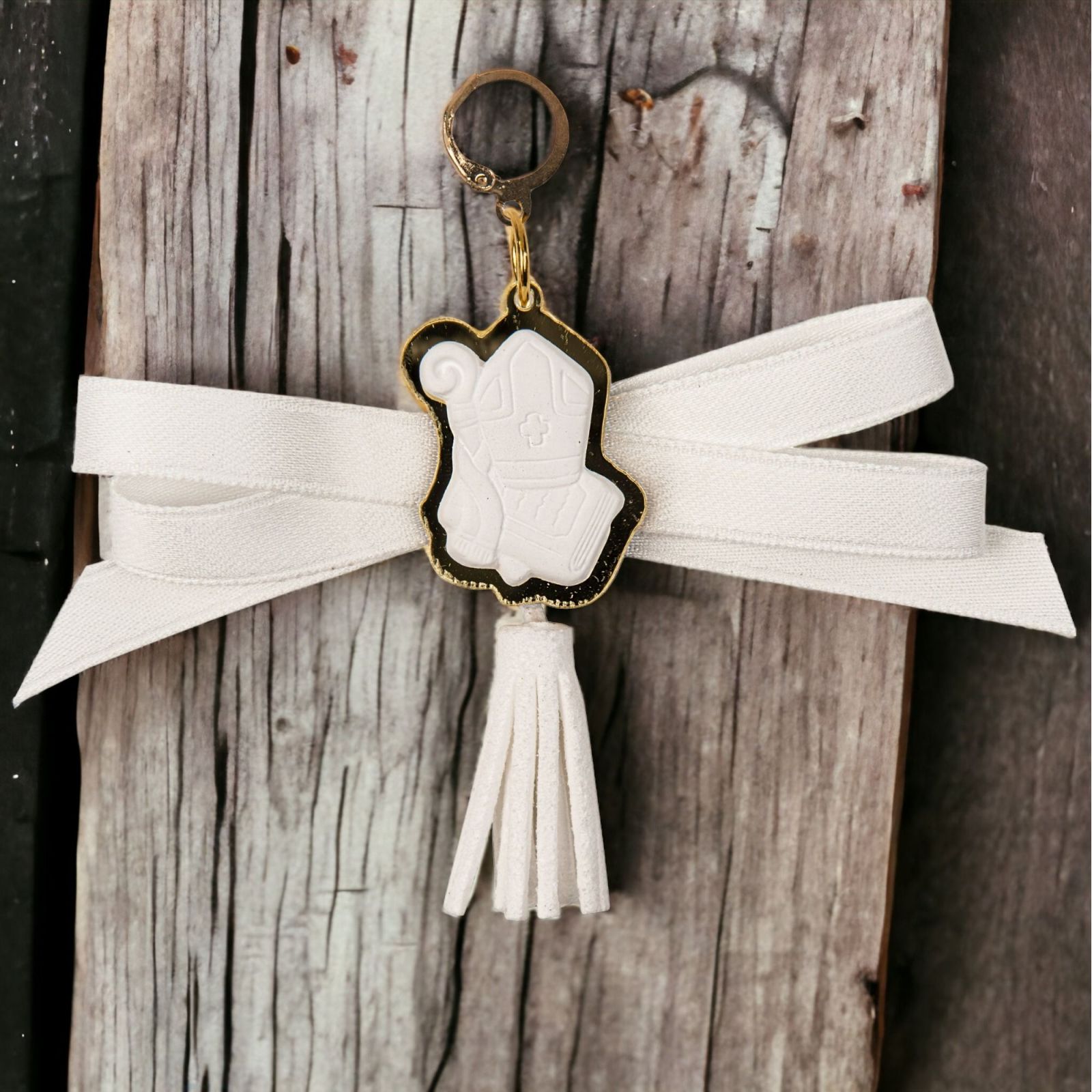 Regalare un ciondolo con fiocco e nappina bianca è un modo semplice e simbolico di ricordare la celebrazione della Santa Cresima.