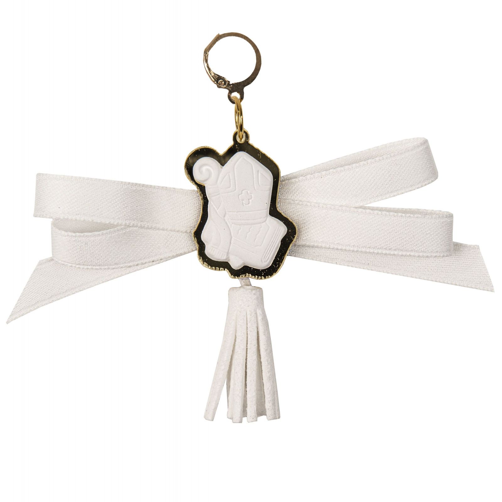 Regalare questo ciondolo con fiocco e nappina bianca, un oggetto di pregevole fattura, è un modo simbolico di ricordare una celebrazione importante come la Santa Cresima.