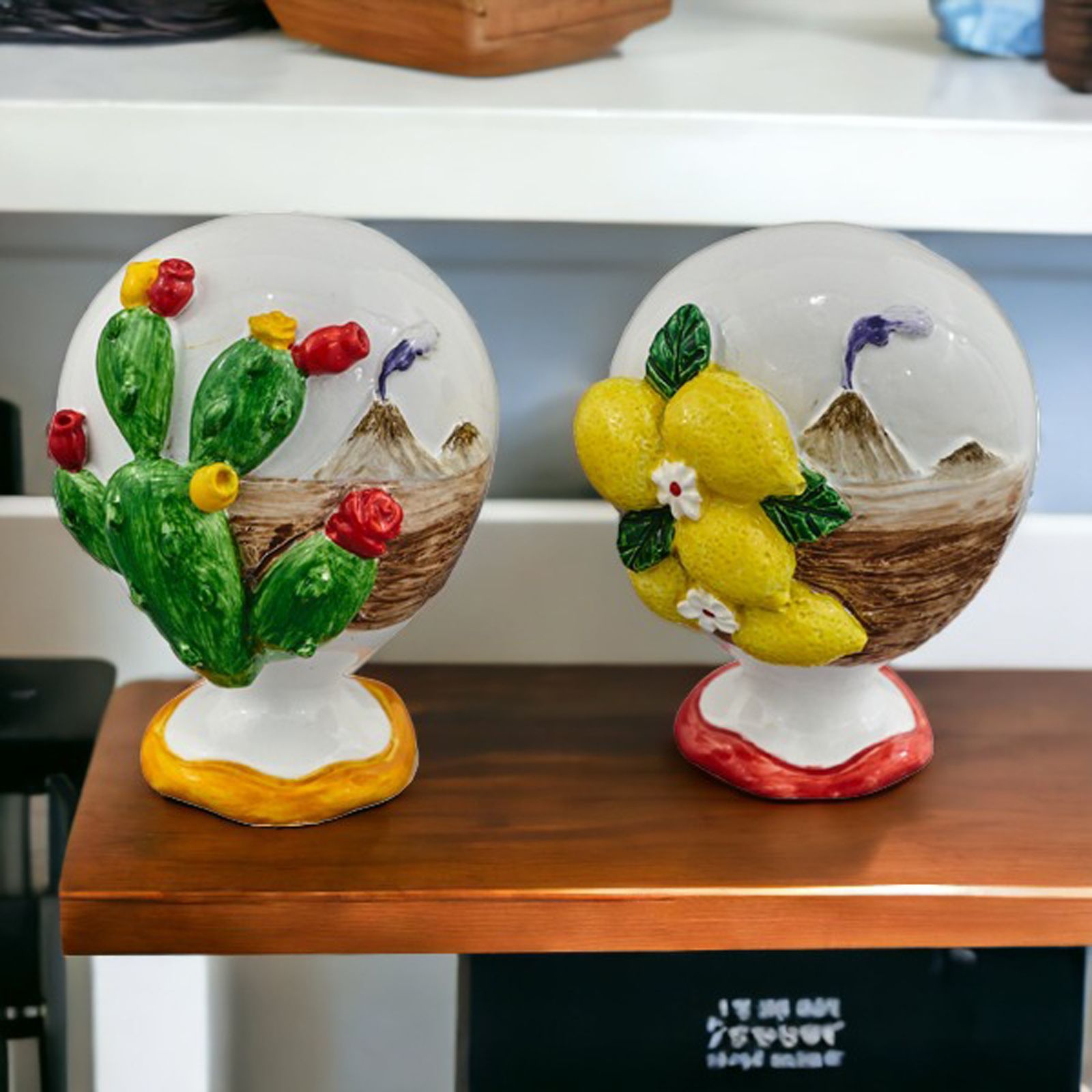Porta la vivacità della Sicilia ai tuoi eventi con il nostro originale palloncino in ceramica, raffigurante assortimenti di limoni o cactus con lo sfondo di un vulcano. Le sue dimensioni di 4x2x5,5 cm lo rendono un complemento ideale per Matrimoni, Nozze e Feste a Tema Sicilia.