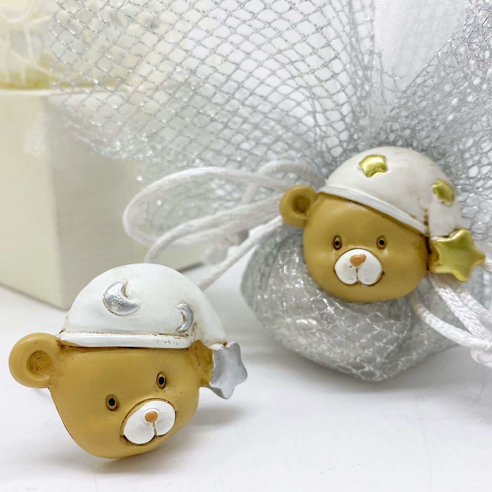 Accogli il nuovo arrivato con dolcezza grazie alla nostra adorabile calamita con testa di orsetto. Realizzata in resistente resina, questa bomboniera è perfetta per celebrare la nascita di un bimbo o di una bimba, aggiungendo un tocco giocoso e tenero alla tua festa.