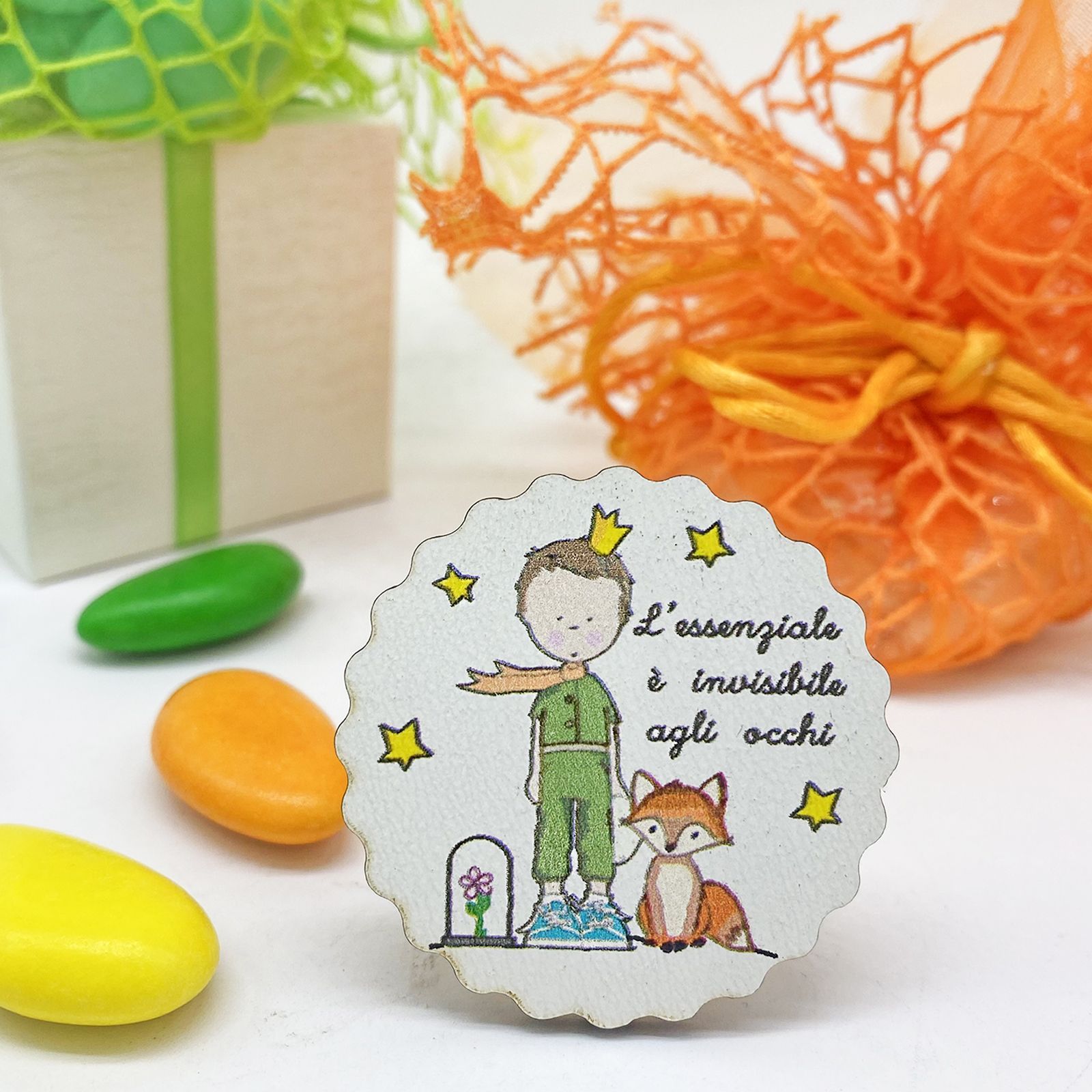 Celebra i momenti speciali della vita del tuo bambino con le nostre bomboniere in legno naturale bianco, arricchite dalla dolce raffigurazione del Piccolo Principe con la volpe e la rosa sotto campana di vetro. Decorate con la frase "L'essenziale è invisibile agli occhi", sono perfette per nascita, battesimo e comunione.