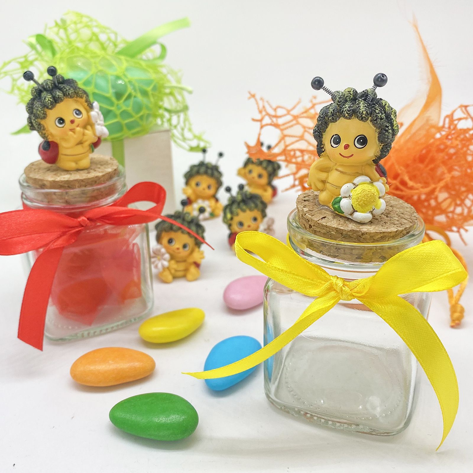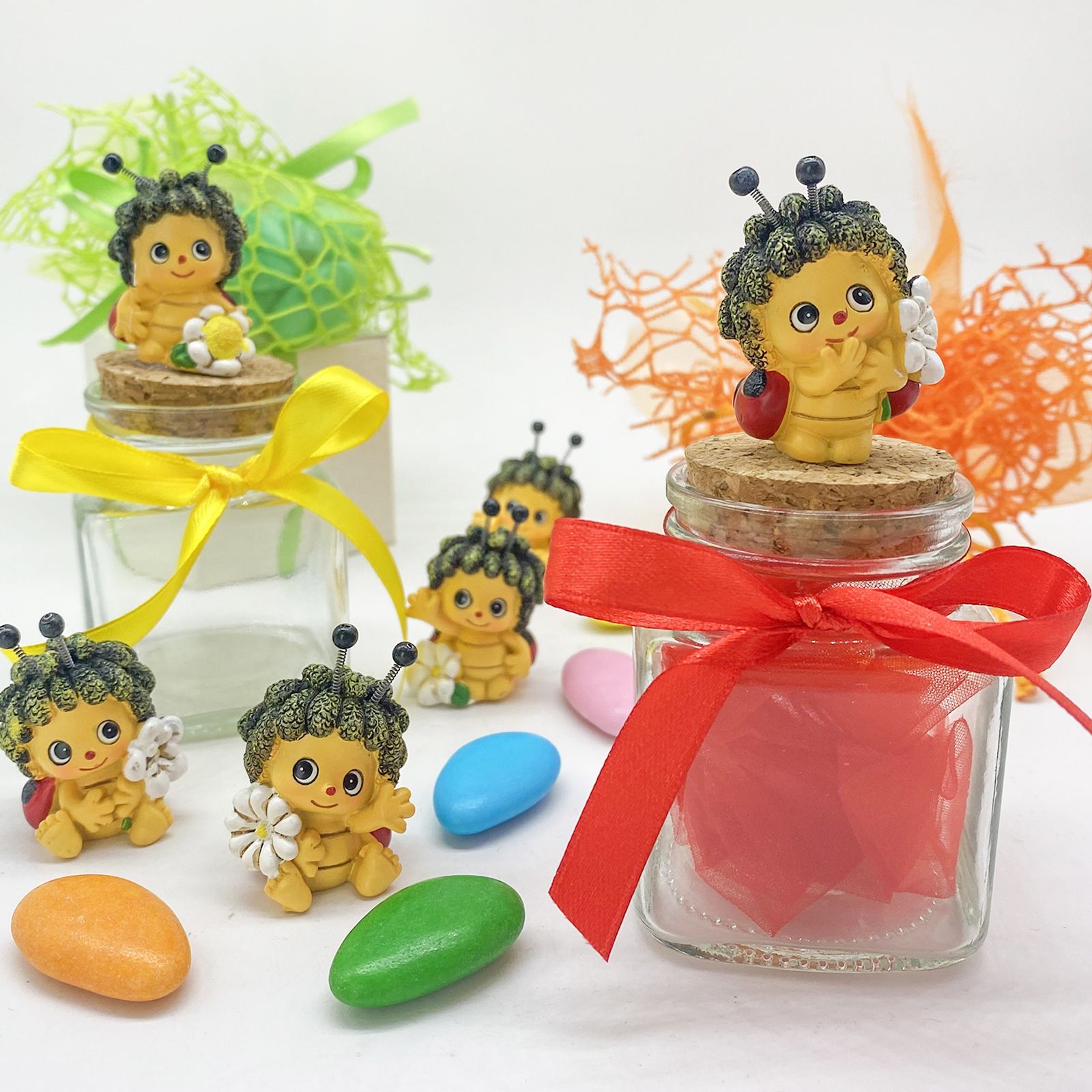 Un momento speciale merita una bomboniera altrettanto speciale. Questo elegante barattolo per confetti, impreziosito da una graziosa coccinella, assortita in più modelli, sul tappo in sughero, è perfetto per celebrare la nascita, il battesimo o la comunione della tua bambina. Un ricordo unico per i tuoi ospiti, simbolo di affetto e fortuna.