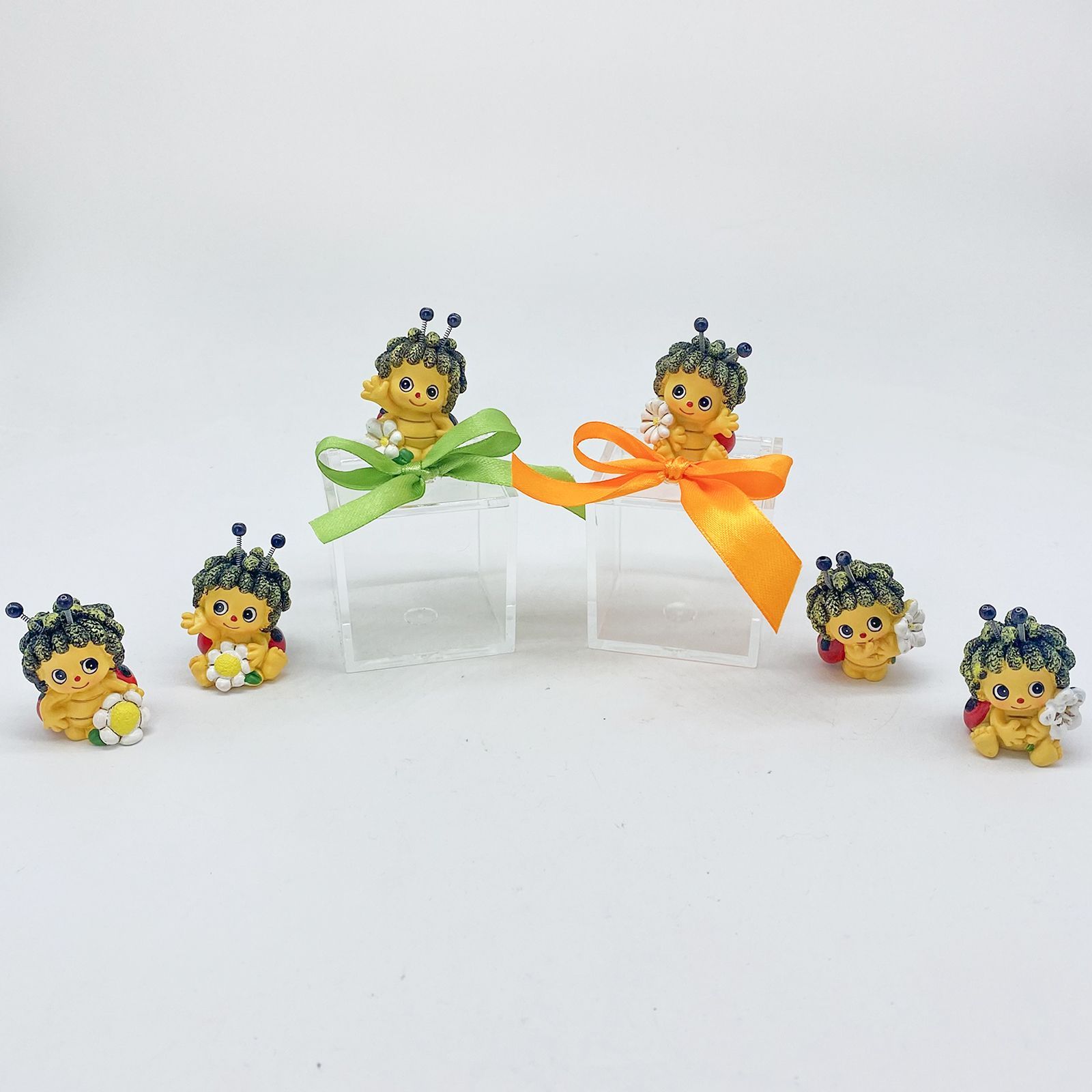 Esplora la nostra collezione di scatoline confetti, ciascuna adornata da una tenera coccinella sul coperchio, completa di antennine su molla e fiore tra le mani. Questa scatolina è assortita in 6 modelli unici è perfetto per commemorare eventi speciali come la nascita, il battesimo e la comunione, aggiungendo un tocco di dolcezza e eleganza alla tua celebrazione.