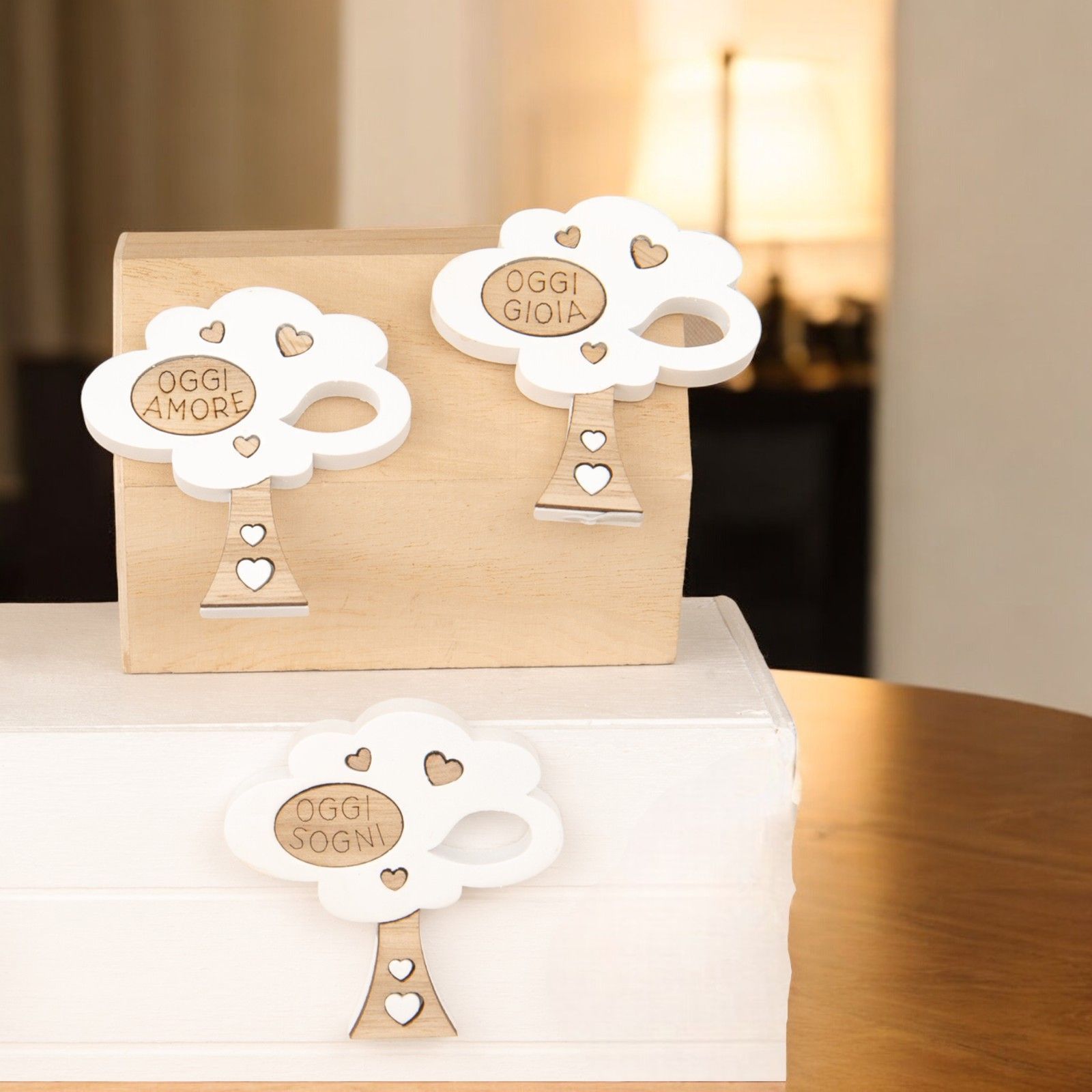 Realizzata in legno di alta qualità, questa bomboniera è un gadget unico e originale che può essere utilizzato come confettata, segnaposto o semplicemente come pensierino da regalare agli invitati.