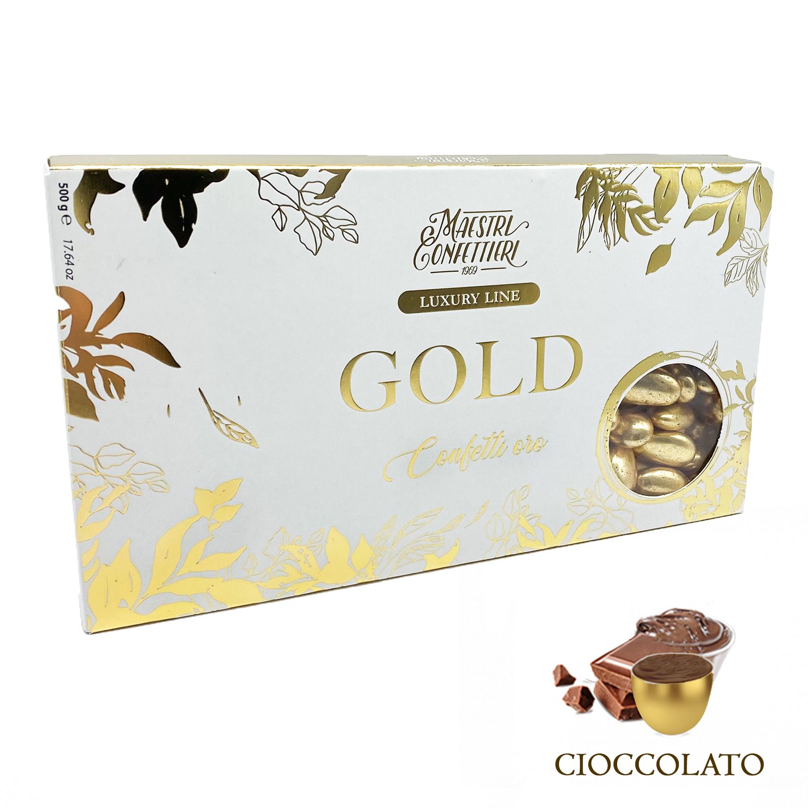 I confetti Maxtris dorati sono senza glutine e sono ripieni di cioccolato fondente e ricoperti di zucchero color oro: ideali sia per confezionare bomboniere per nozze d'oro/50 anni matrimonio, sia per feste tema oro.