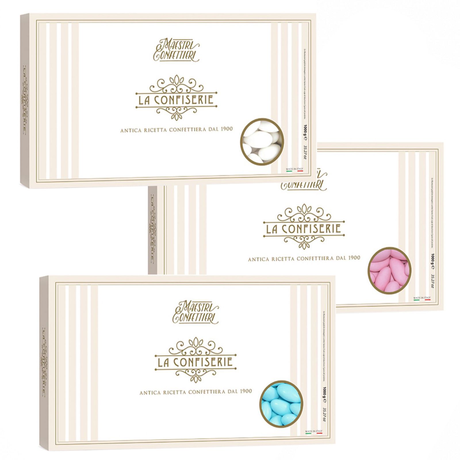 Acquista la convenienza delle confezioni da 1 Kg di confetti classici, di forma ovale, ripieni di deliziosa mandorla pelata e ricoperti di un gustoso strato di zucchero!