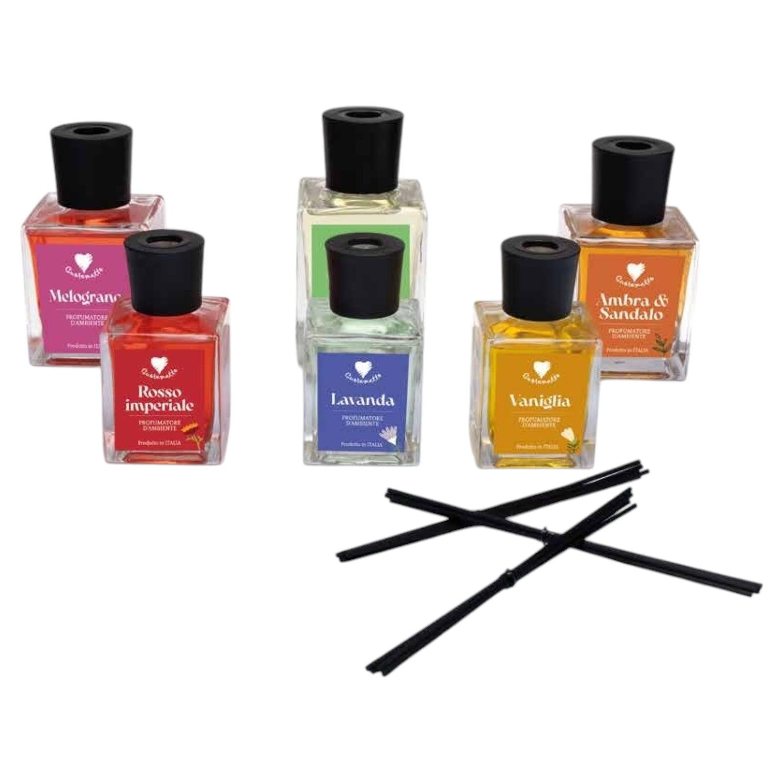 Un simbolo di eleganza e solidarietà per i tuoi eventi speciali: il profumatore ambiente della collezione Cuorematto è perfetto per celebrare matrimoni, cresime, comunioni, lauree e anniversari. Disponibile nelle dimensioni Standard: 100 ml e Grande: 200 ml, si distingue per il design raffinato e le profumazioni assortite di Vaniglia, Rosso Imperiale, Muschio Bianco, Melograno, Lavanda e Ambra e Sandalo.