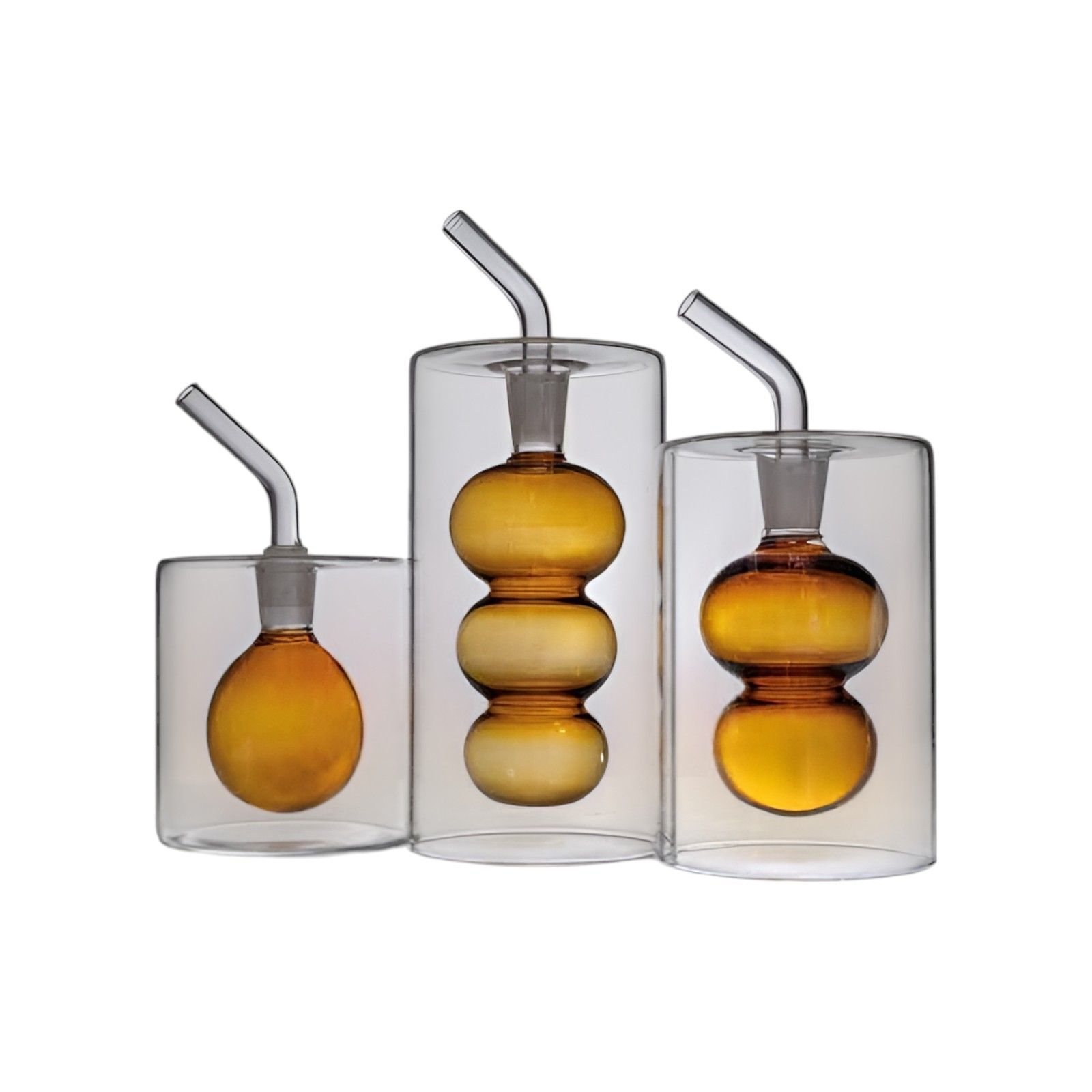 Particolare oliera di forma cilindrica, tappo dosatore e con delle bolle all'interno che conterranno olio, è un'idea originale e particolare per bomboniere matrimonio e anniversario. Questo prodotto unico è disponibile in tre dimensioni: Standard (1 bolla) da 60 ML cm 7,5x14H, Grande (2 bolle) da 100 ML cm 7,5x16H, e Maxi (3 bolle) da 350 ML cm 7,5x19,5H.