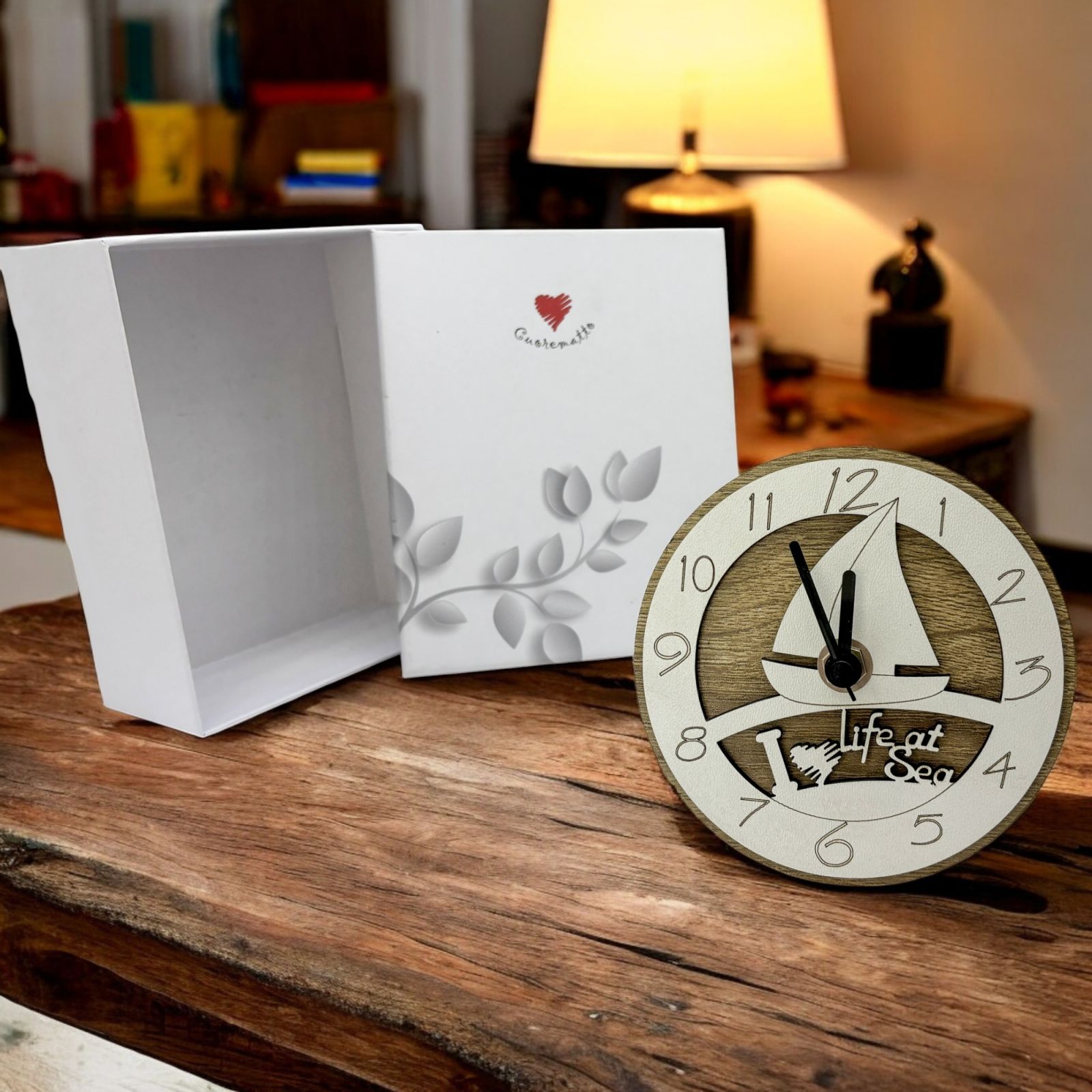 Questo orologio è perfetto per celebrare momenti speciali come diciottesimi, comunioni, cresime, compleanni, matrimoni e anniversari. Con la sua raffigurazione di una barca a vela e la scritta "I ♡ life at sea", rappresenta un simbolo di libertà e avventura.