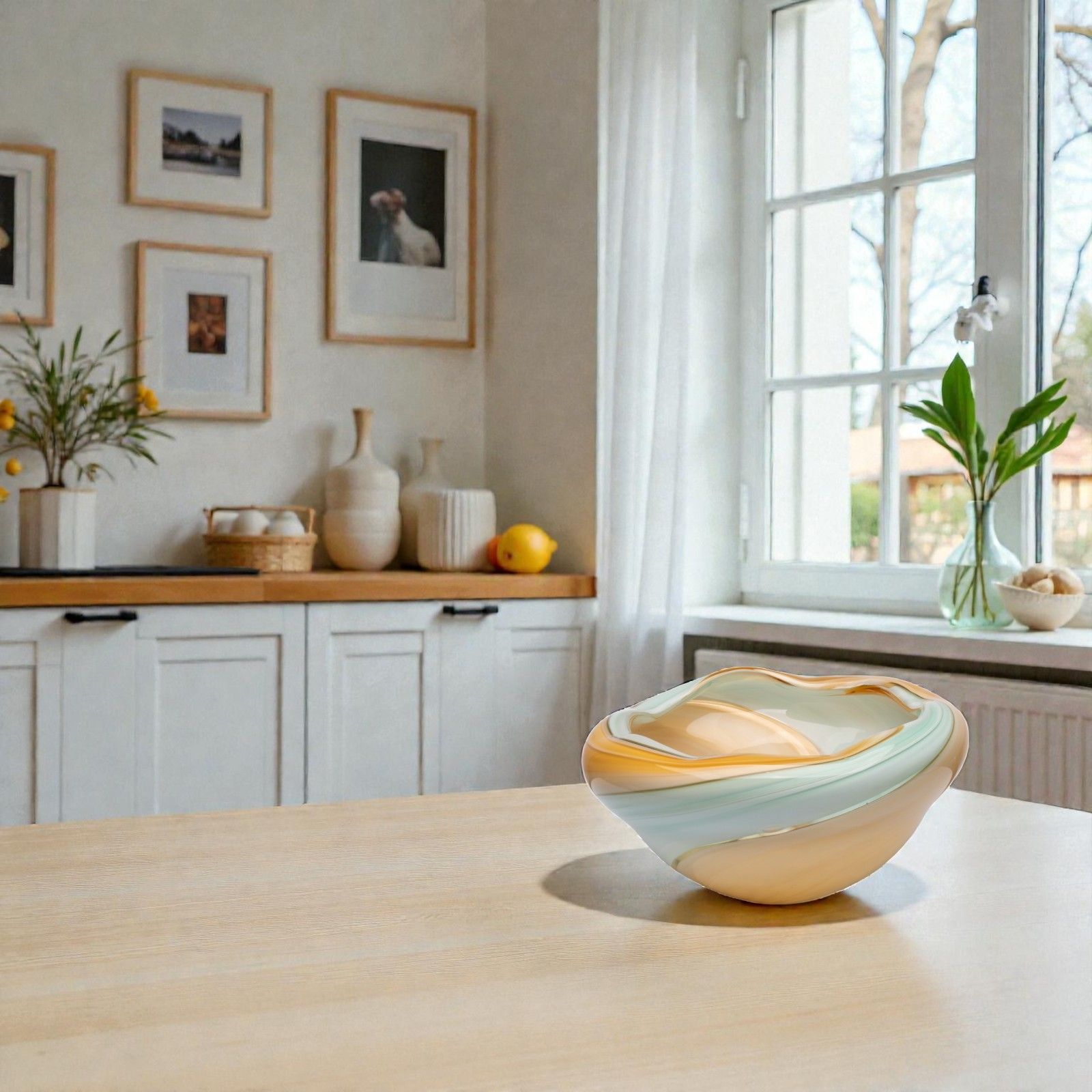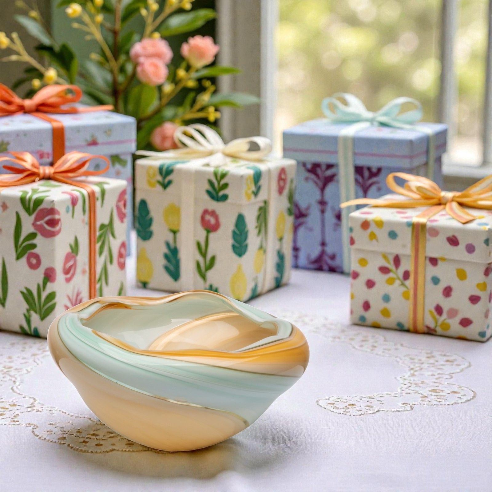 Scopri il nostro centrotavola in vetro soffiato, un'elegante bomboniera che incarna la magia delle nozze. Questo raffinato pezzo, realizzato a mano, non è solo un oggetto decorativo, ma un simbolo di amore e condivisione. Ogni volta che i tuoi ospiti lo utilizzeranno, ricorderanno quel giorno speciale, sentendosi parte di un momento che rimarrà impresso nel cuore.