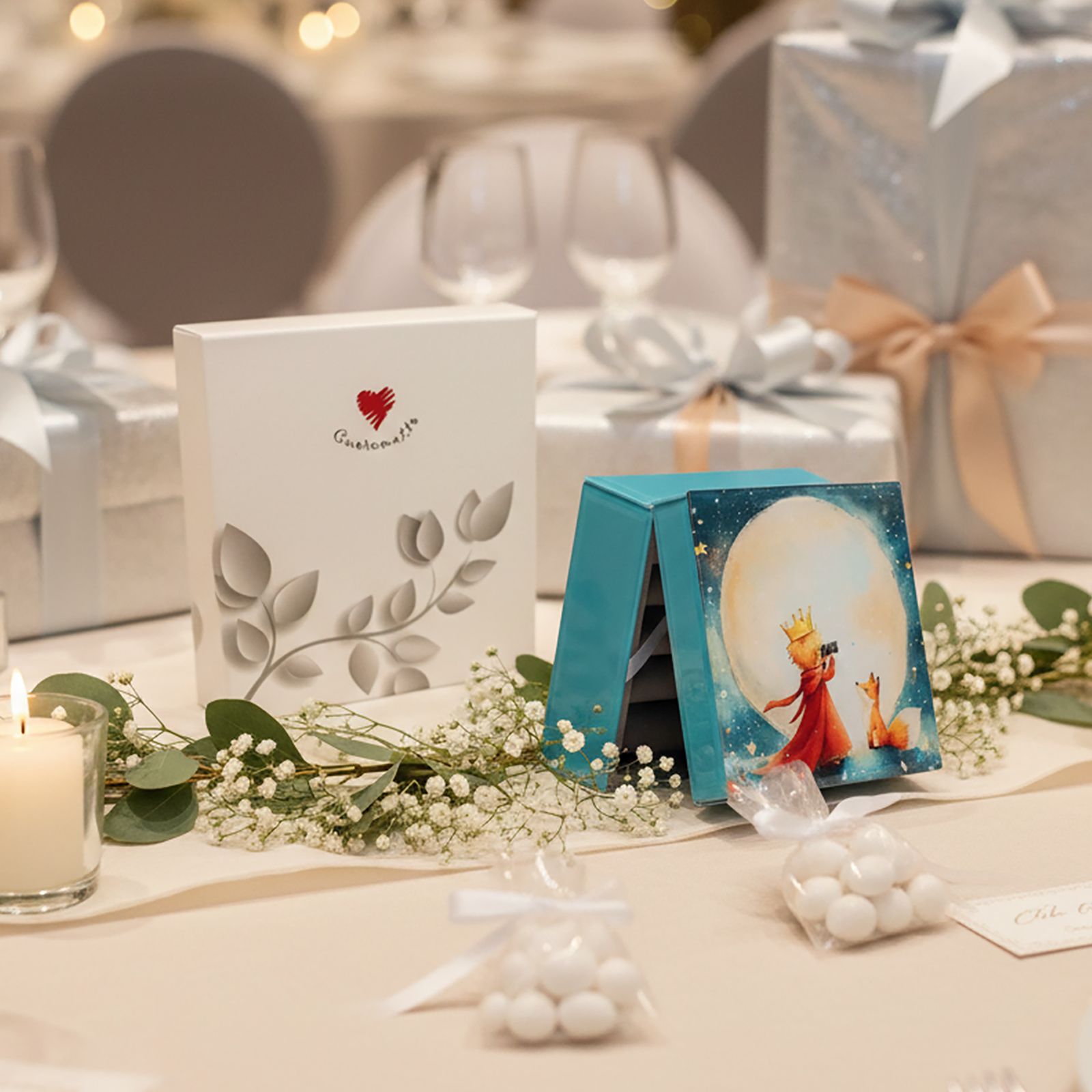 Scopri la magia di regalare una bomboniera che racconta storie e trasmette valori. Il nostro portagioie a cerniera con il Piccolo Principe è più di un semplice oggetto: è un simbolo di amore e attenzione da donare in occasioni speciali come il battesimo e la prima comunione. Con la sua delicata tonalità azzurra, questa bomboniera originale saprà incantare i cuori di grandi e piccini, rendendo indimenticabile ogni momento.