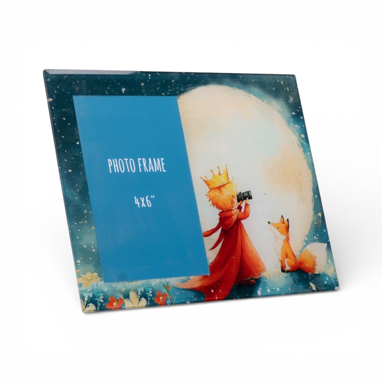 Realizzato in pregiato vetro azzurro, questo portafoto è adornato dalla dolce raffigurazione del Piccolo Principe, un personaggio amato che invita a sognare e a guardare oltre le apparenze, arriverà completo di scatola regalo. Ogni acquisto della collezione Solidale Cuorematto non solo abbellirà la tua casa, ma contribuirà a finanziare progetti di beneficenza, regalando un significato speciale al tuo gesto di generosità.