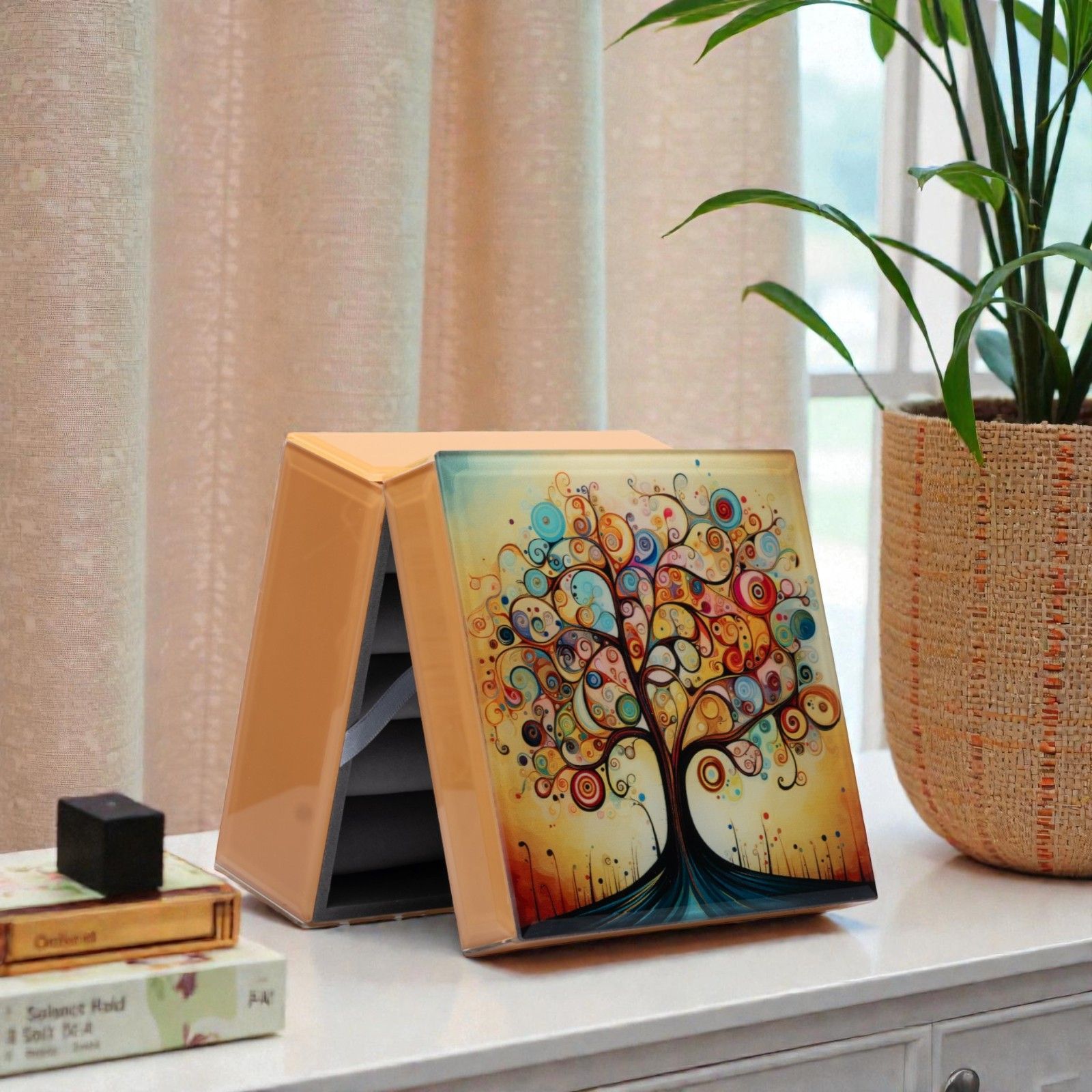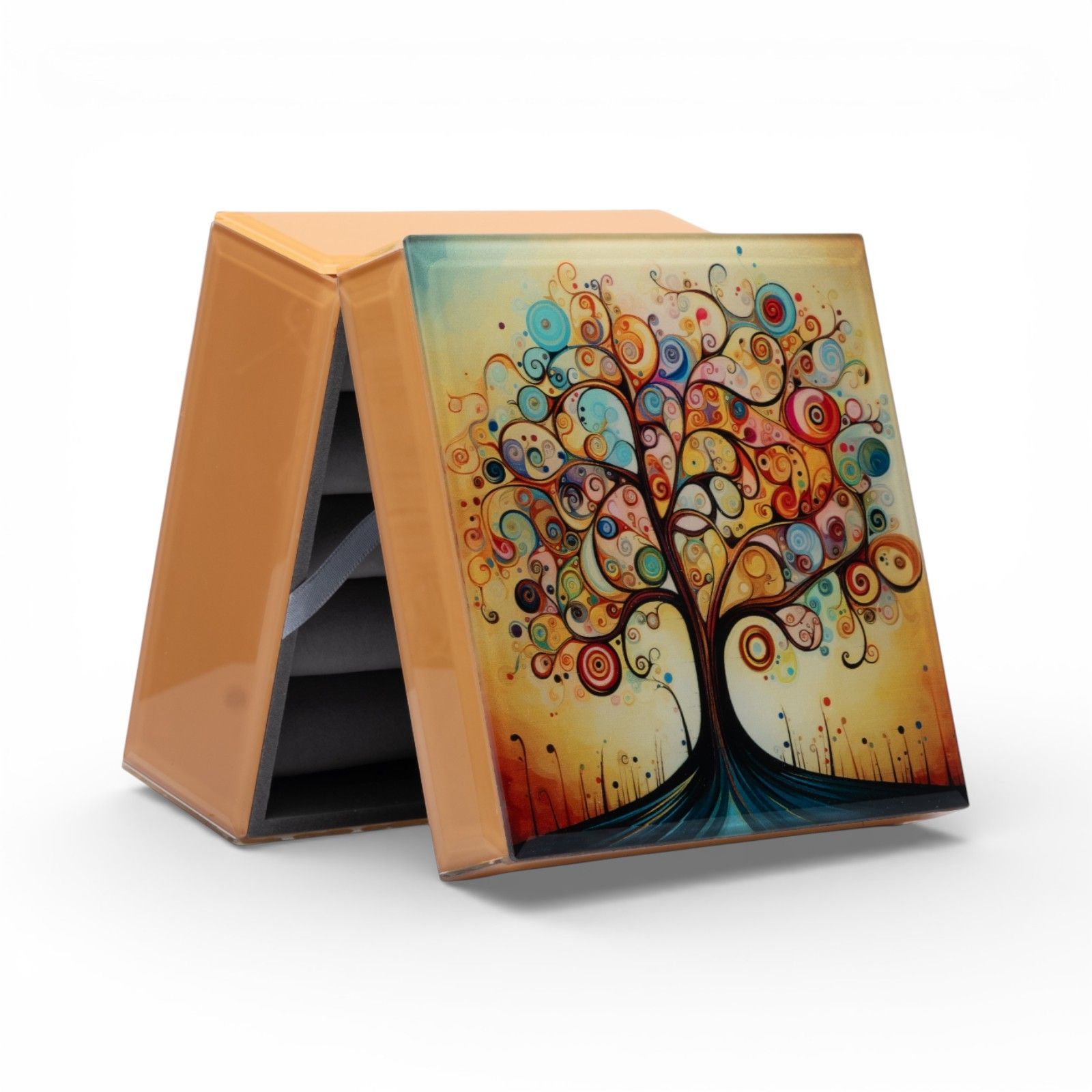 Realizzato in alta qualità e con un delicato colore tortora, questo portagioie a cerniera si distingue per il bellissimo motivo dell'albero della vita, decorato con vari colori. Ogni dettaglio è pensato per evocare emozioni e ricordi preziosi, rendendo questo regalo qualcosa di più di un semplice oggetto: è un gesto d'amore che lascia un segno nel cuore, con scatola regalo inclusa.