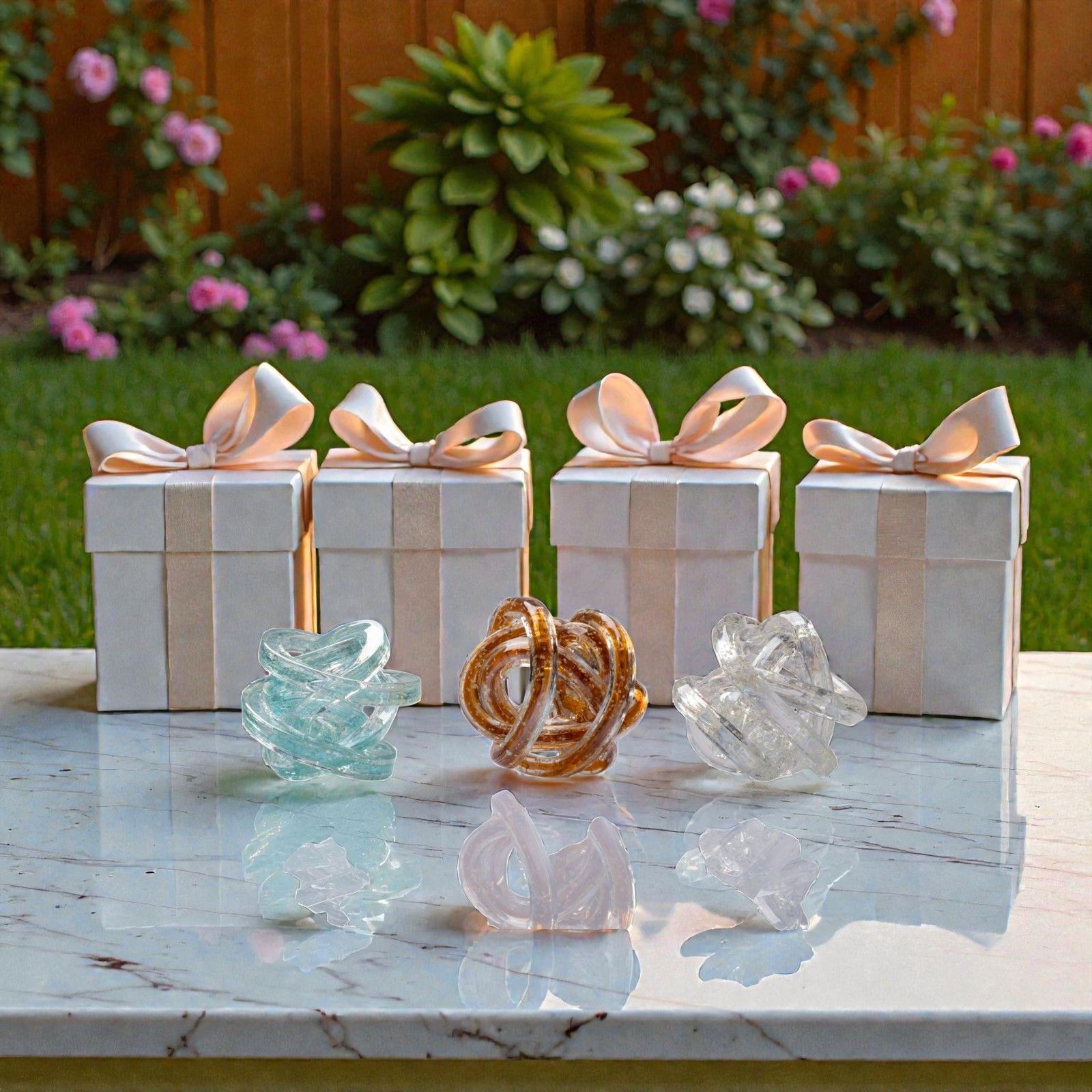 Scopri il nostro Nodo d'Amore, una bomboniera unica che celebra l'essenza dell'amore e della condivisione. Realizzata con cura in vetro fatto a mano, questa bomboniera non è solo un oggetto decorativo, ma un vero e proprio simbolo di affetto e speranza. Assortito in tre raffinati colori bianco, celeste e ambra per rendere il tuo matrimonio o il tuo anniversario ancora più memorabile. Ogni pezzo rappresenta un gesto di amore, perfetto per chi desidera lasciare un segno speciale nel cuore dei propri ospiti.