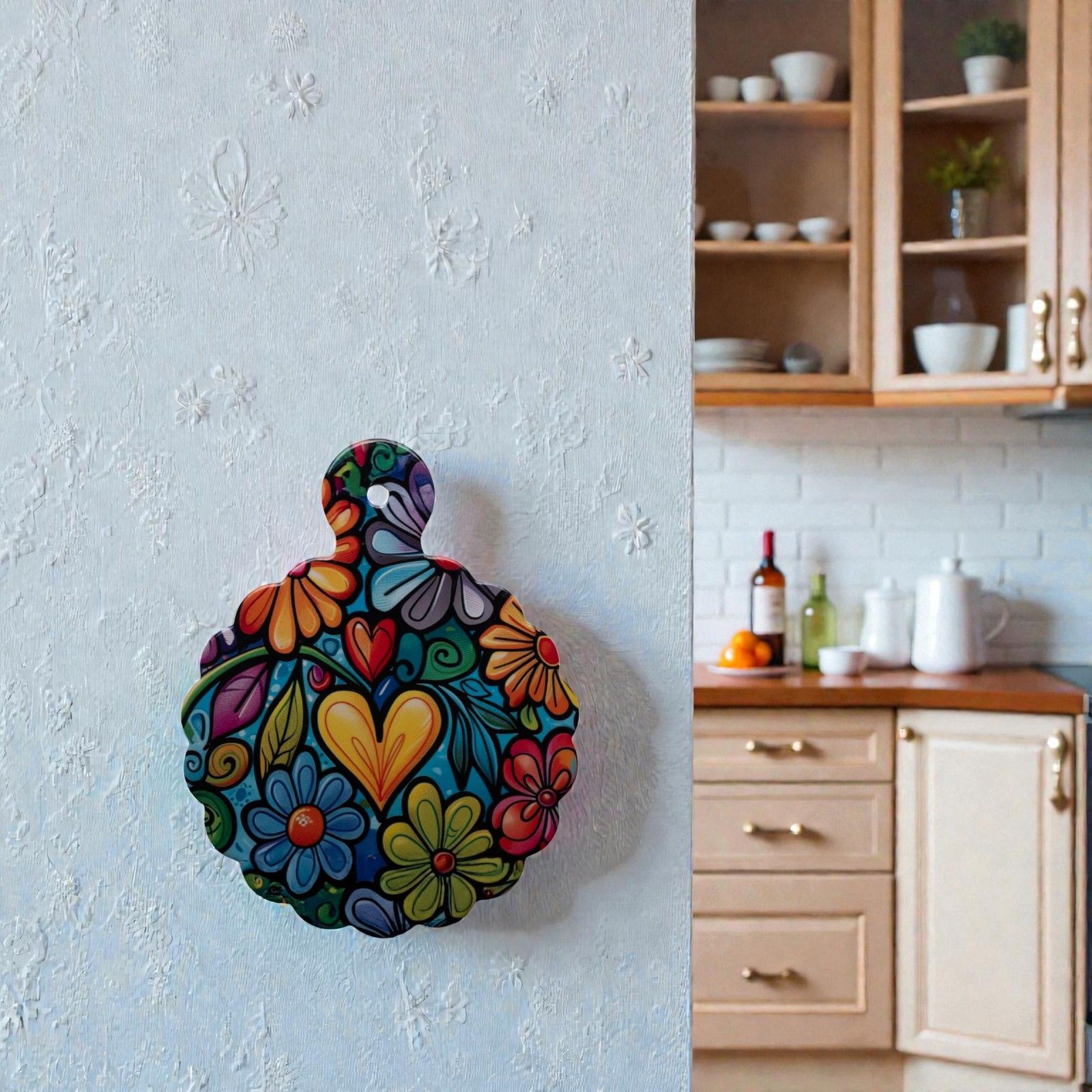 Realizzato in ceramica multicolore, il nostro sottopentola presenta un raffinato bordo ondulato e un pratico manico con foro superiore. La raffigurazione di un motivo floreale colorato trasmette un senso di freschezza e vivacità, perfetto per eventi come il matrimonio. Essendo bomboniere solidali, ogni acquisto non solo abbellisce la tua tavola, ma contribuisce a finanziare importanti progetti di beneficenza, regalando un significato speciale al tuo gesto di generosità.