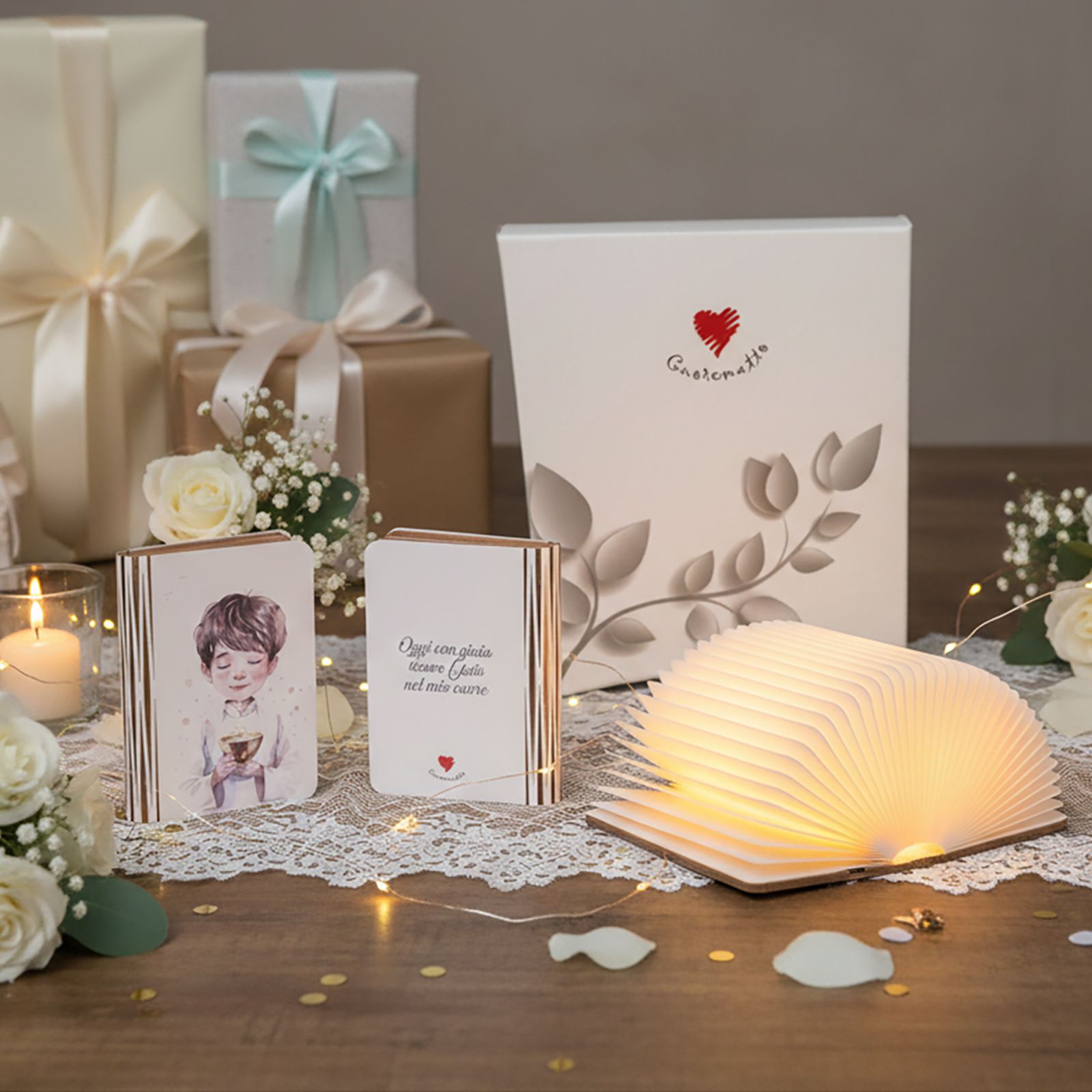 In aggiunta, ogni Libro Luminoso sarà consegnato in una graziosa scatola regalo, perfetta per sorprendere i tuoi ospiti e rendere il tuo evento ancora più memorabile!