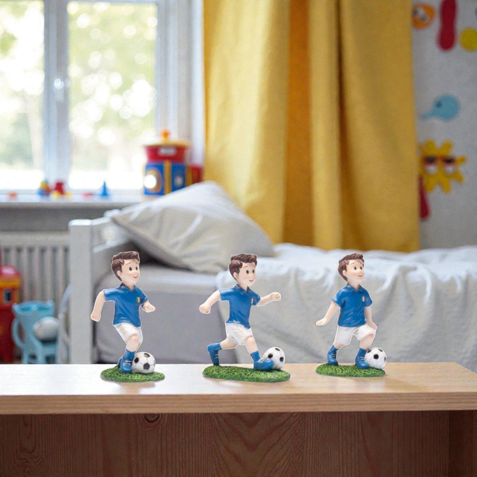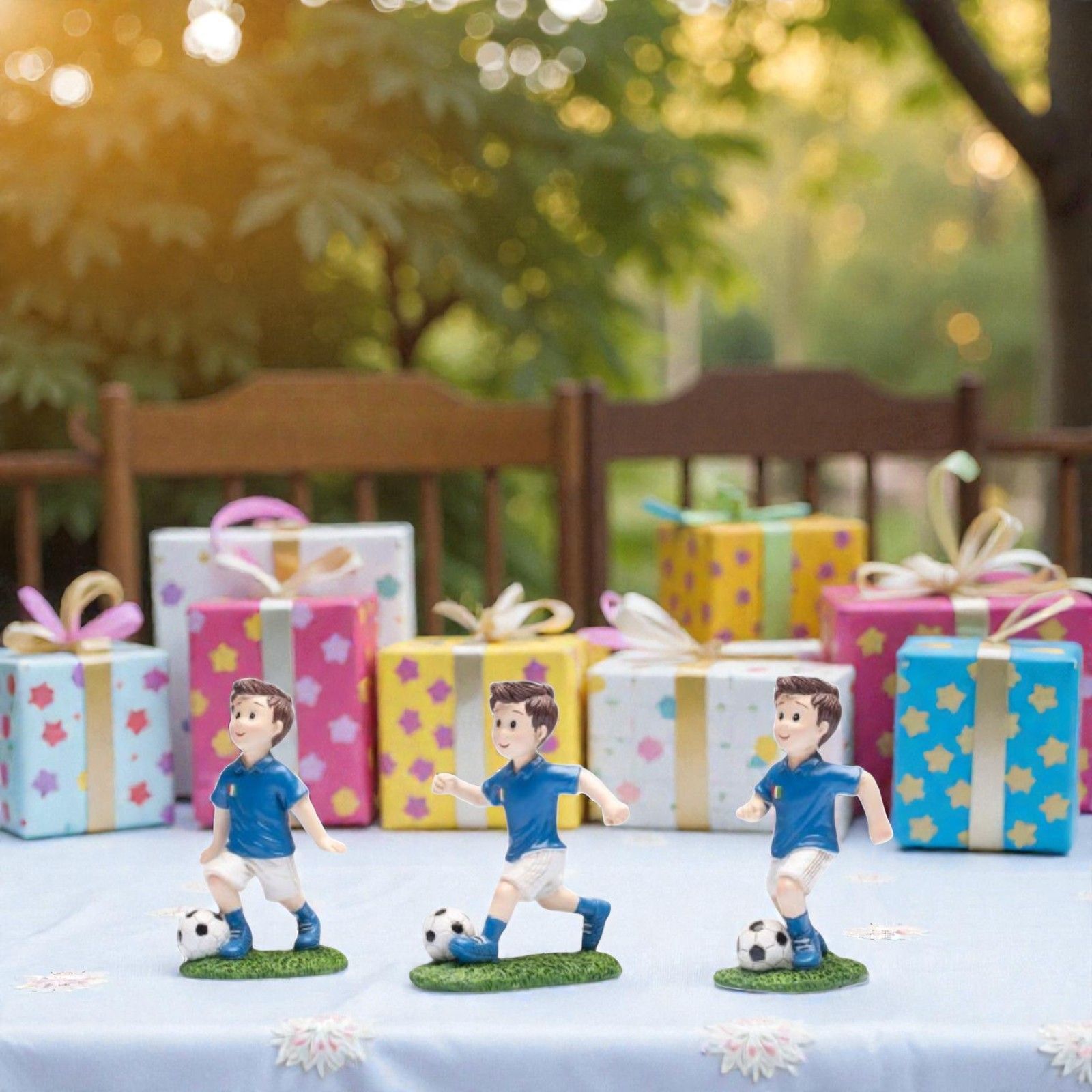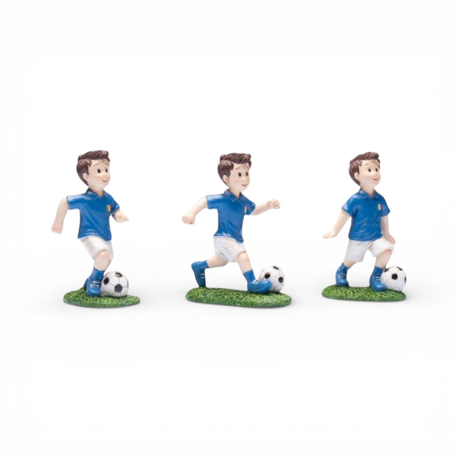 Regala emozioni e sorrisi agli invitati con queste statuine calciatore della squadra Italia. I tre modelli assortiti con pallone sono bomboniere a tema calcio ideali per compleanno e comunione, perfette per celebrare la passione per il gioco più amato dagli italiani e lasciare un ricordo speciale del giorno importante.
