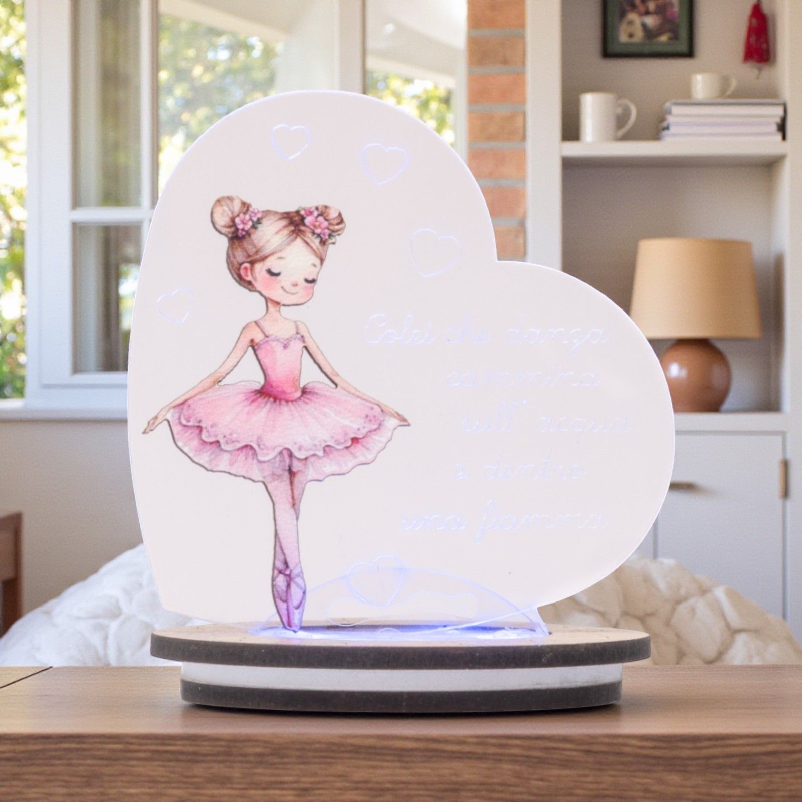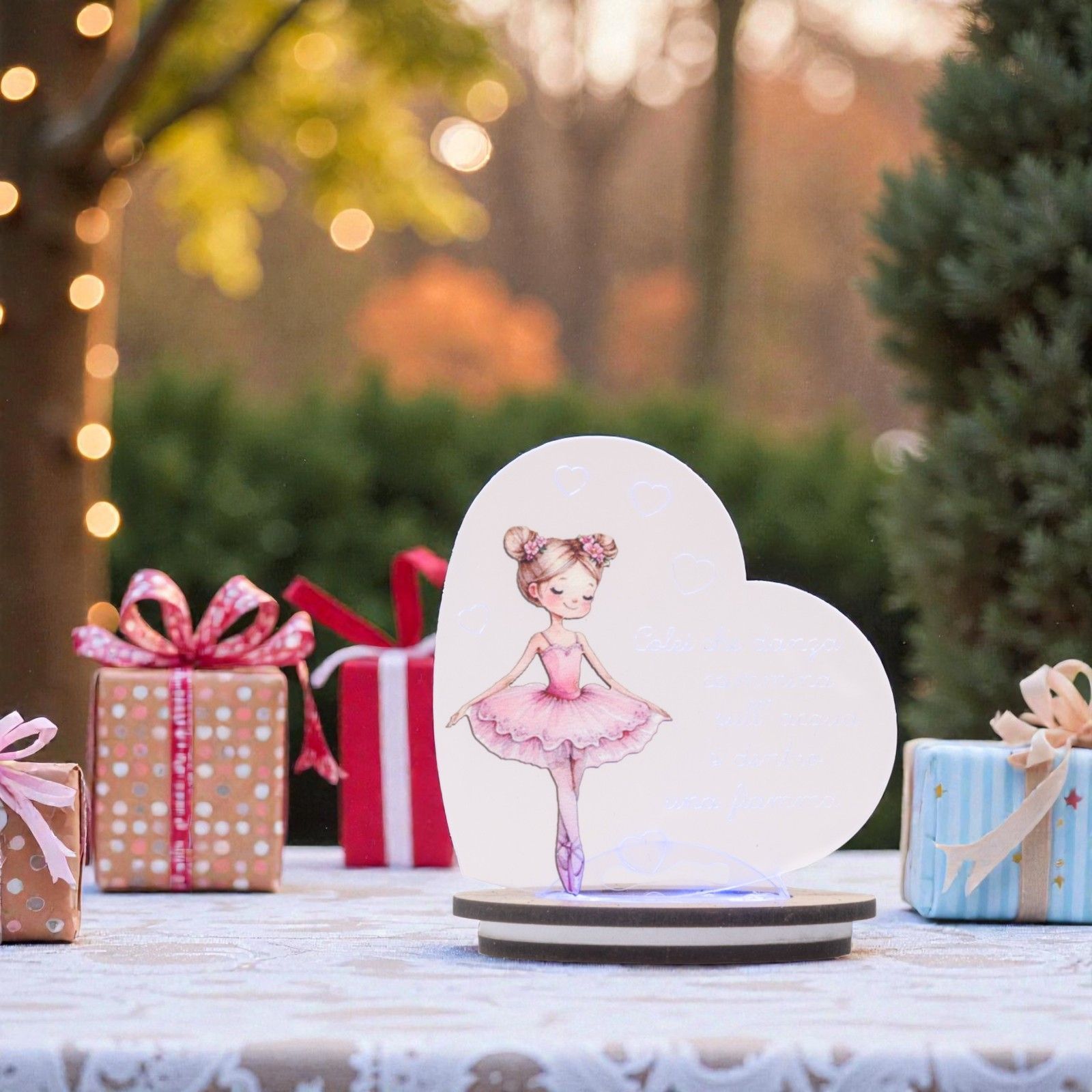 Vuoi ringraziare gli invitati con una bomboniera capace di emozionare al primo sguardo? Questa lampada LED con cuore e dolce ballerina sulle punte è una bomboniera raffinata e poetica, pensata per essere donata agli ospiti in occasione di battesimo, primo compleanno o comunione.