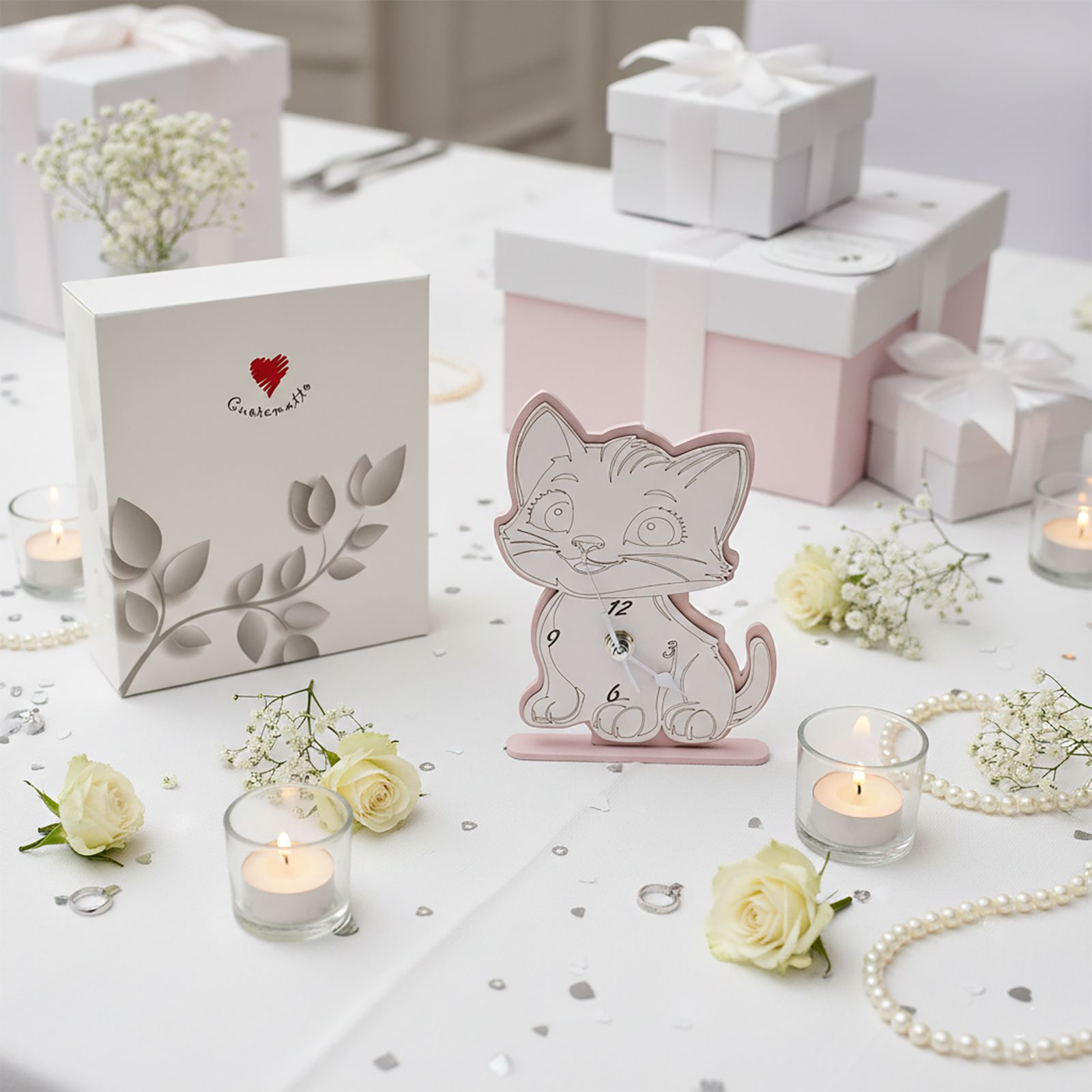 Regala un tocco di originalità e tenerezza con il nostro orologio a forma di simpatico gattino, perfetto per celebrare momenti speciali come un battesimo o il primo compleanno della tua piccola. Questa bomboniera non è solo un oggetto decorativo, ma un simbolo di affetto e gioia, pensato per rimanere nel cuore di chi lo riceve. Scegliere una bomboniera solidale significa anche contribuire a una causa più grande, rendendo il tuo gesto ancora più significativo.