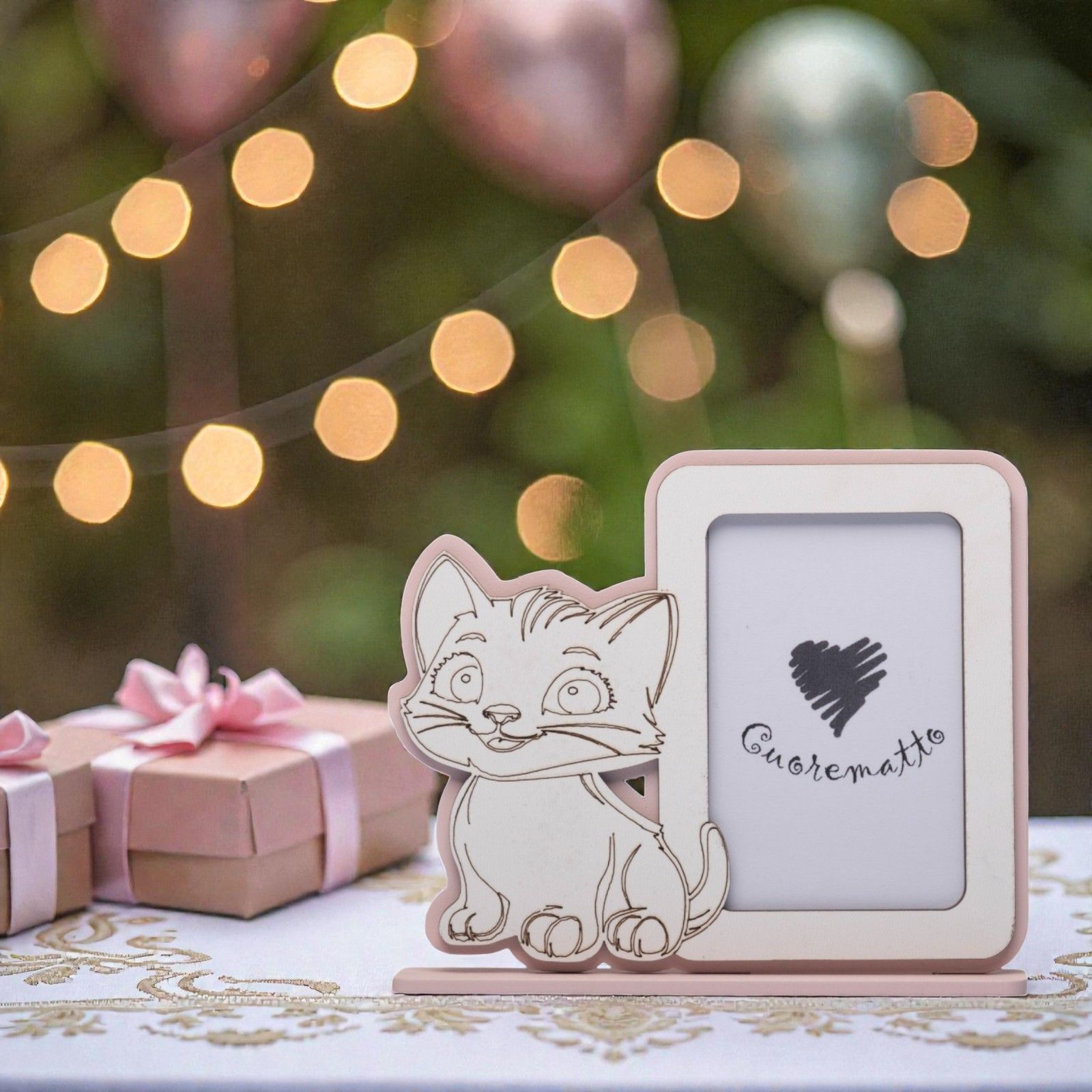 Rendi il tuo battesimo e il primo compleanno della tua bimba ancora più speciali con una bomboniera che racconta una storia d’amore. La nostra cornice portafoto con un dolce gattino è un simbolo di tenerezza e affetto, perfetta per custodire i momenti più preziosi della tua piccola. Ogni volta che i tuoi ospiti la guarderanno, saranno avvolti da dolci ricordi, un omaggio che fa battere il cuore.