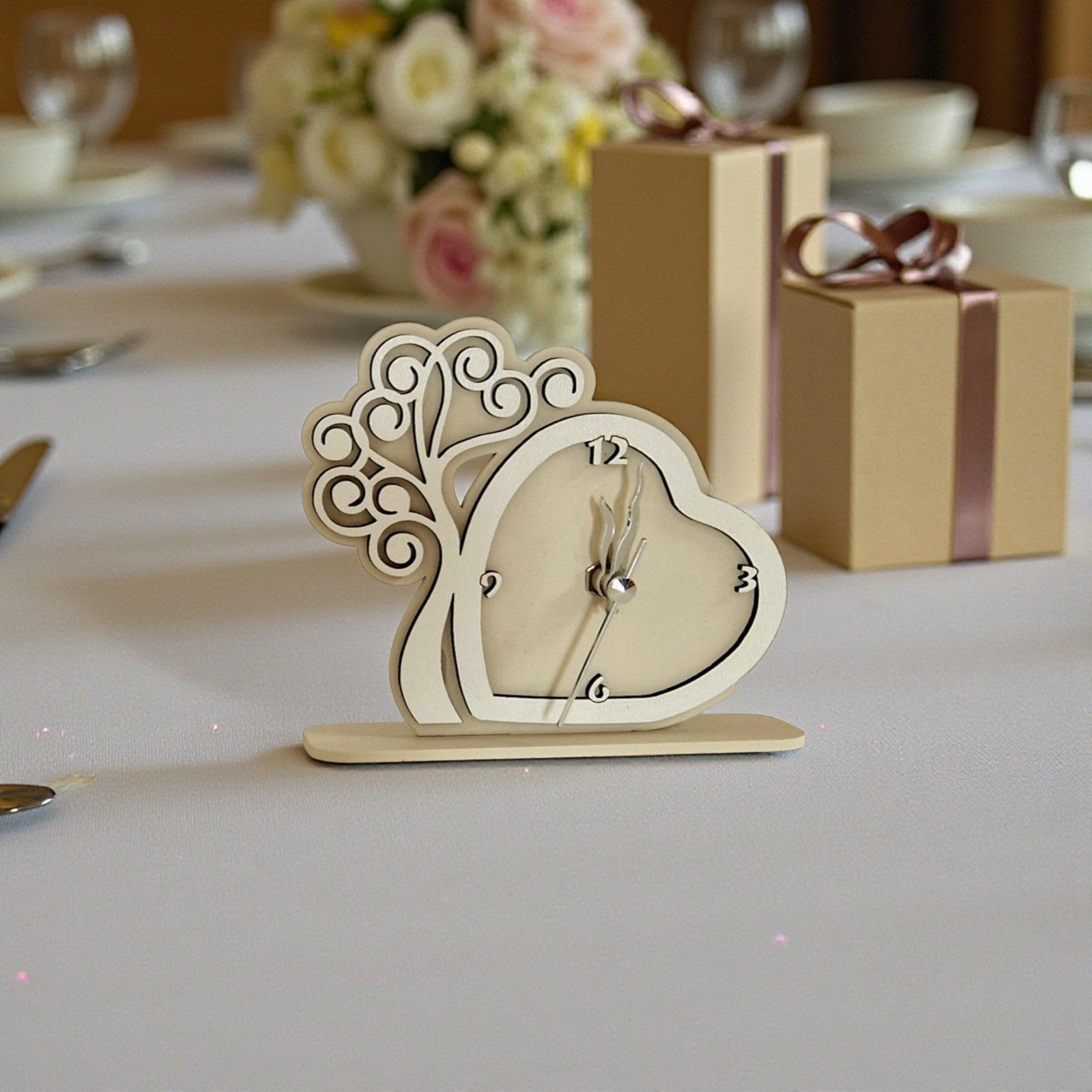 Realizzato in legno di alta qualità e in un elegante tono avorio, questo orologio non è solo una semplice decorazione, ma una delle bomboniere utili più apprezzate per la sua funzionalità e il suo design raffinato. Ogni dettaglio è pensato per emozionare, trasformando un oggetto quotidiano in un simbolo di amore e connessione.