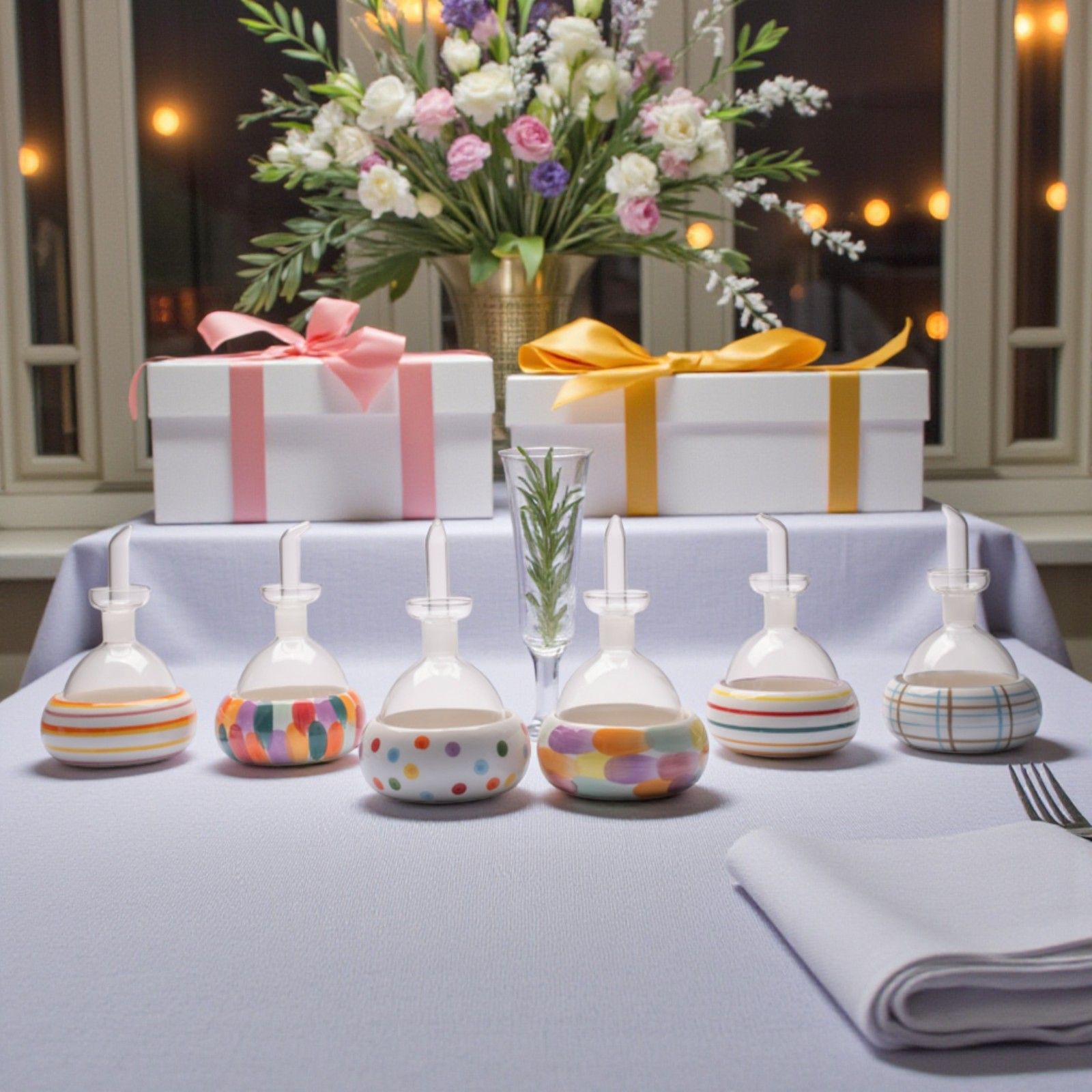 Immagina di condividere momenti di gioia con i tuoi amici di cuorematto, regalando un pensiero che non solo abbellisce la tavola ma si rivela anche pratico nel quotidiano. La scelta dei colori pastello assortiti, disponibili come in foto, rende ogni oliera un elemento armonioso, capace di adattarsi a qualsiasi stile, dal più classico al più moderno. Ogni pezzo è un invito a gustare la vita in compagnia, un gesto che racchiude affetto e gratitudine.