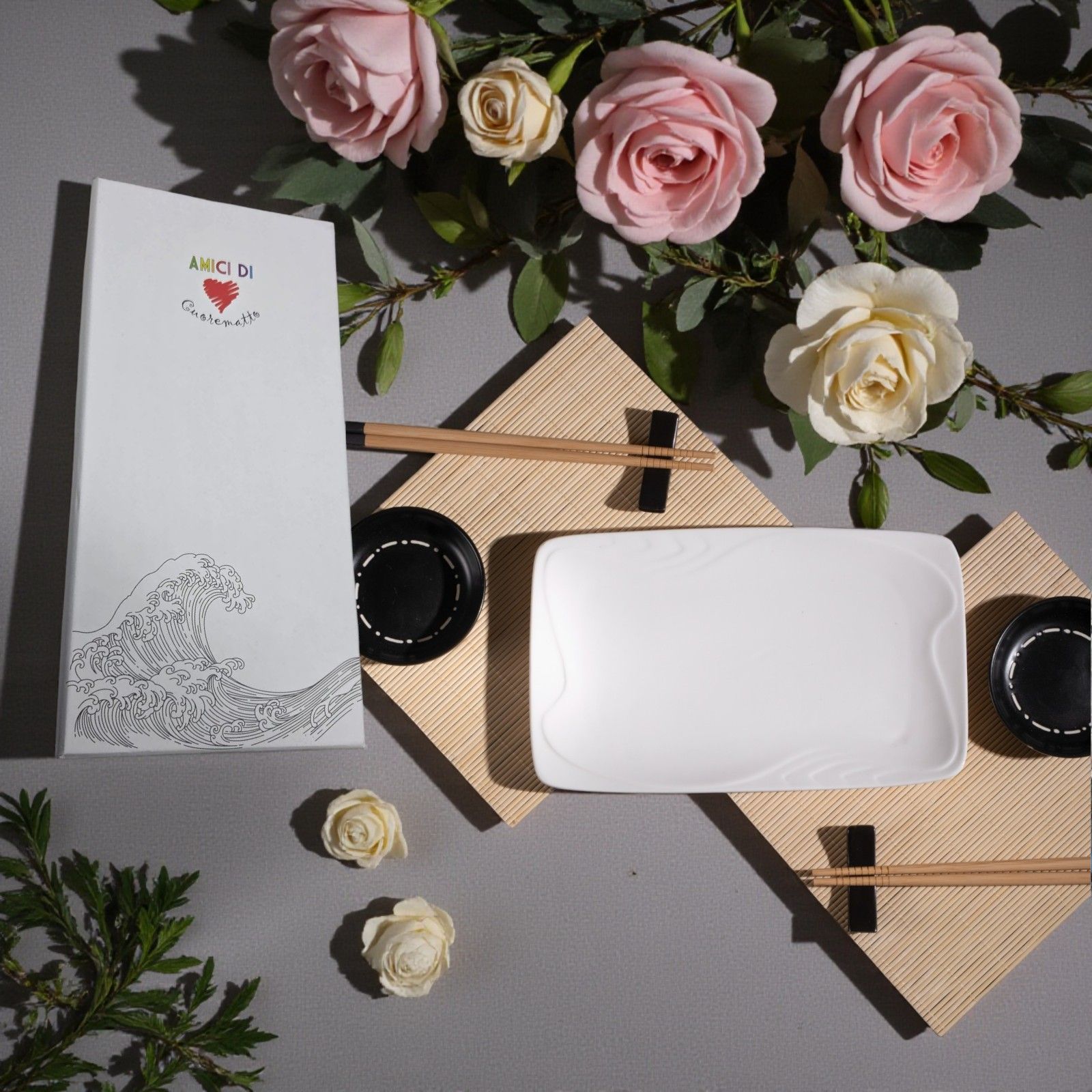 Realizzato in elegante ceramica nei raffinati colori nero e bianco, il nostro set sushi è un simbolo di eleganza e originalità. Ogni pezzo è pensato per sorprendere e deliziare, rendendo il tuo matrimonio o anniversario un evento memorabile. Con la pratica scatola regalo inclusa, fare un regalo utile e significativo non è mai stato così facile e bello.
