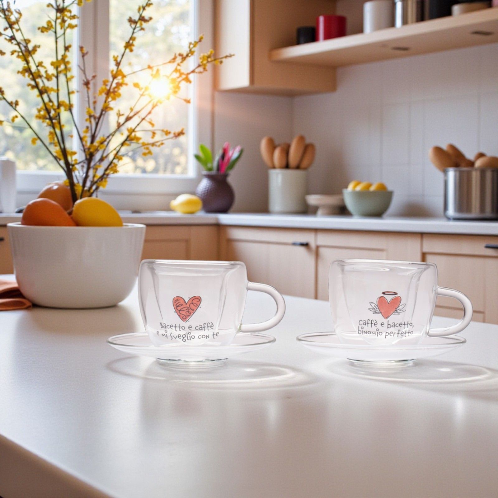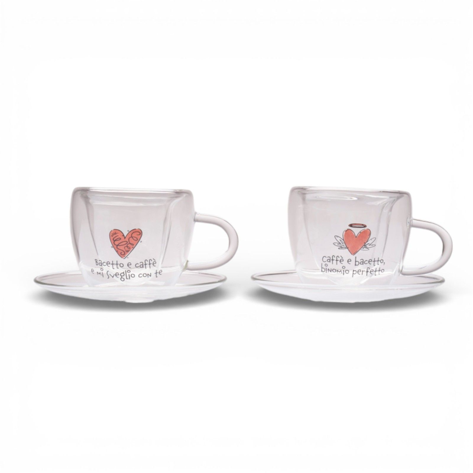 Realizzate in vetro borosilicato, le nostre tazzine sono non solo eleganti, ma anche utili e resistenti. La trasparenza del materiale, insieme alle scritte nere che adornano il cuore rosso, rende ogni tazzina un pezzo d'arte, capace di rimanere nei cuori e nelle case di chi le riceve. Scegliere queste bomboniere solidali significa donare un ricordo indimenticabile e contribuire a una causa significativa.