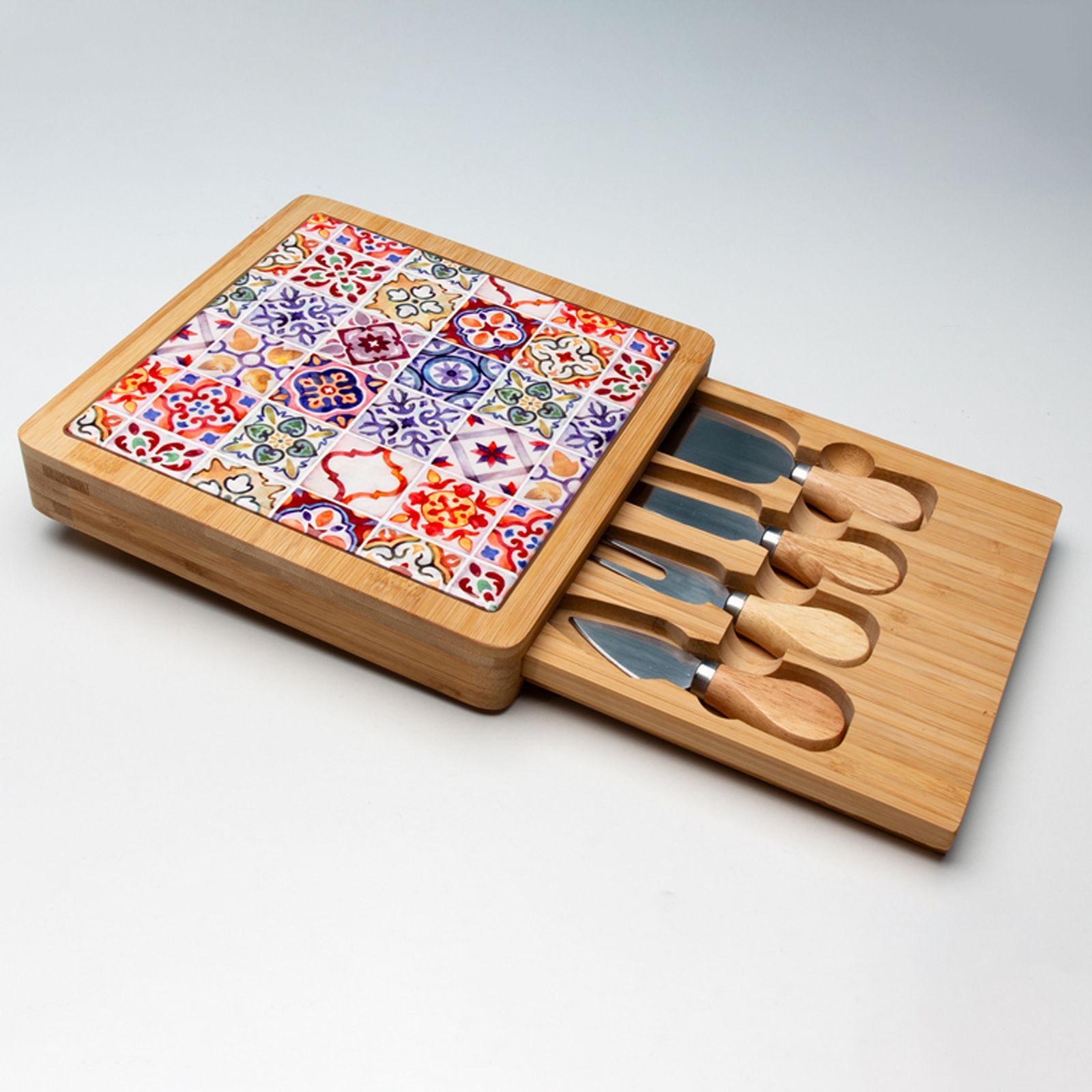 Il set include 4 coltelli di alta qualità, presentati con stile in una scatola di legno naturale decorata con una mattonella dai suggestivi motivi maiolici. Con dimensioni di 23x23x5H cm circa, questo tagliere diventa un elemento prezioso per arricchire la cucina di chiunque lo riceva, trasformando ogni momento in un ricordo speciale.