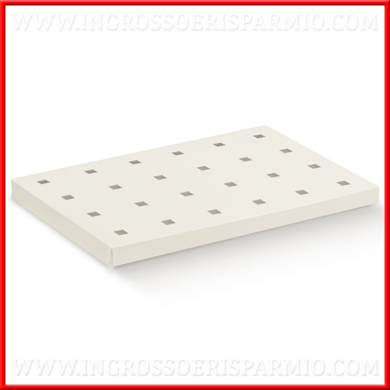 Realizzato in cartoncino rigido bianco perlato, con 24 fori porta coni.