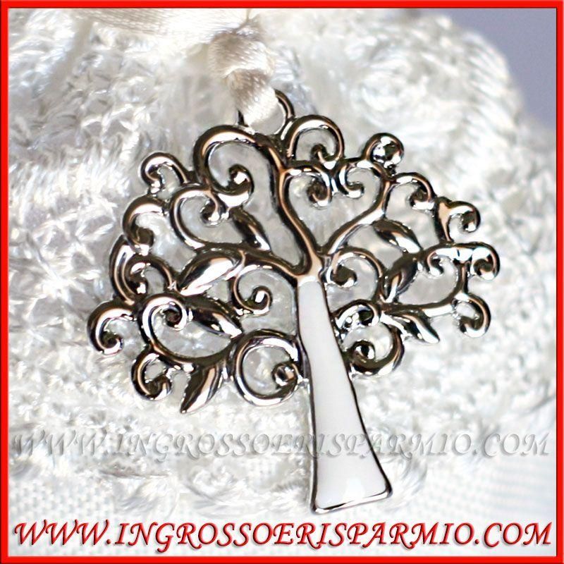Ciondoli per bomboniere Fai di Te "Albero della Vita" in zama, metallo argentato lucido con tronco smaltato in bianco.