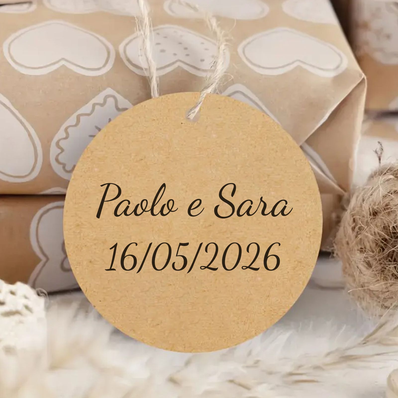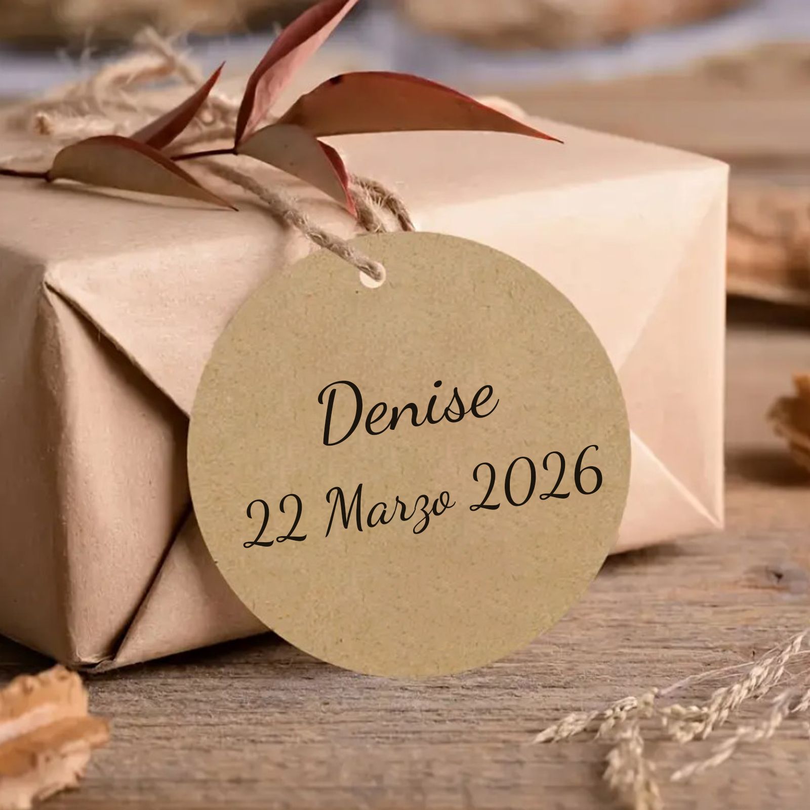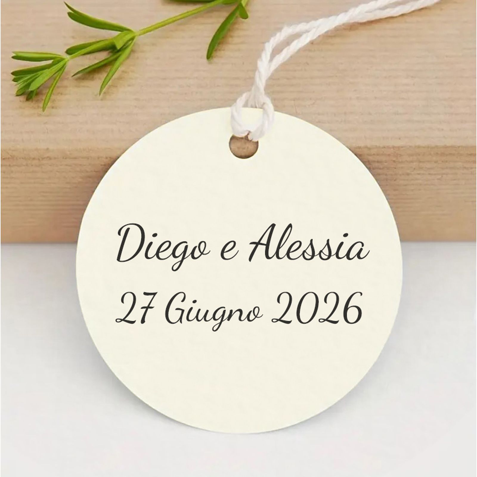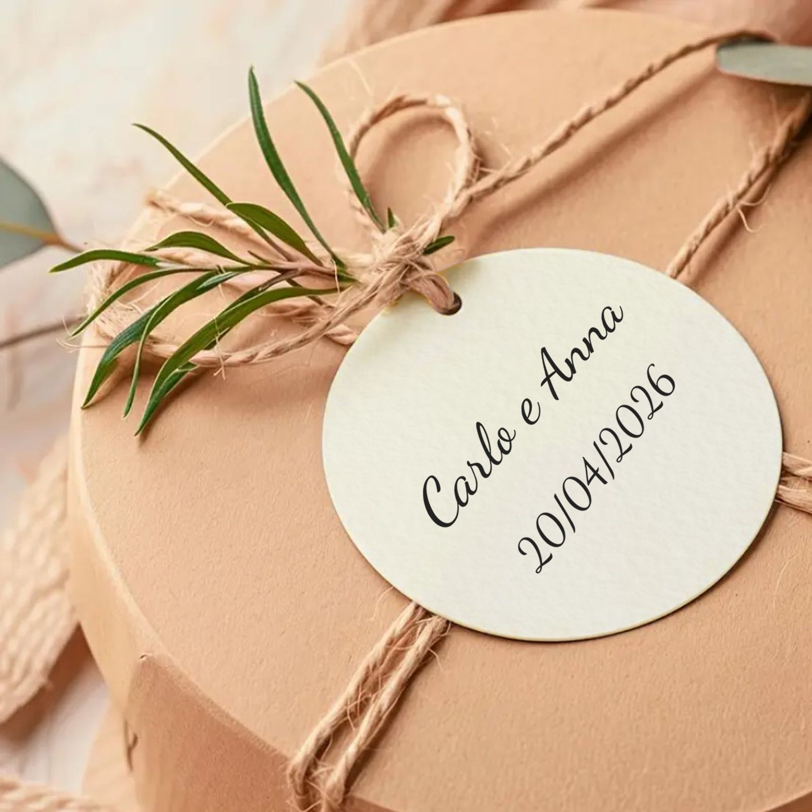 Realizzato in resistente cartoncino, il tag è già preforato nella parte superiore, pronto per essere legato con un nastrino e trasformarsi in un elegante segnaposto o decorazione per le tue bomboniere fai da te. Un piccolo dettaglio che arricchisce ogni confezione e rende unico ogni ricordo per i tuoi invitati.