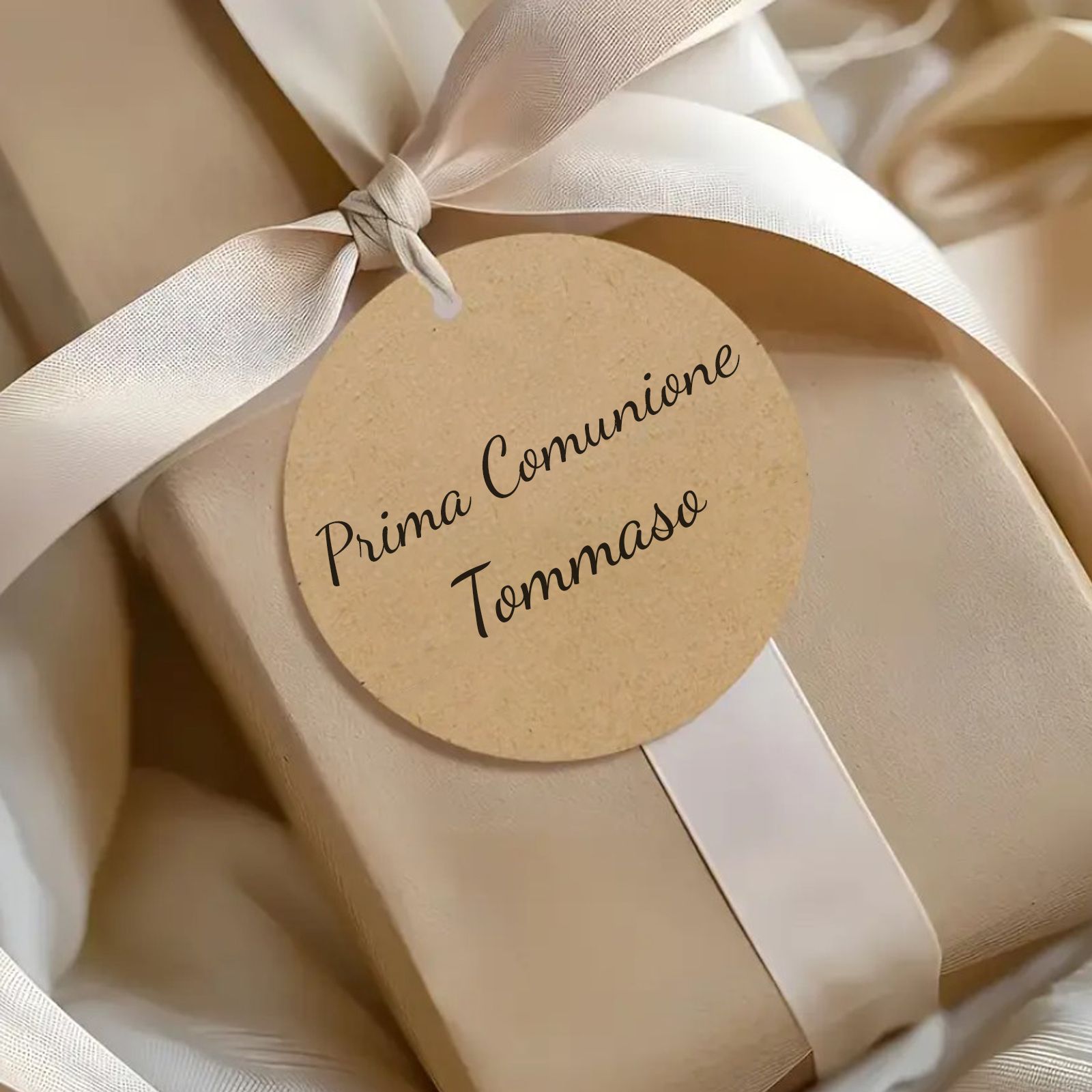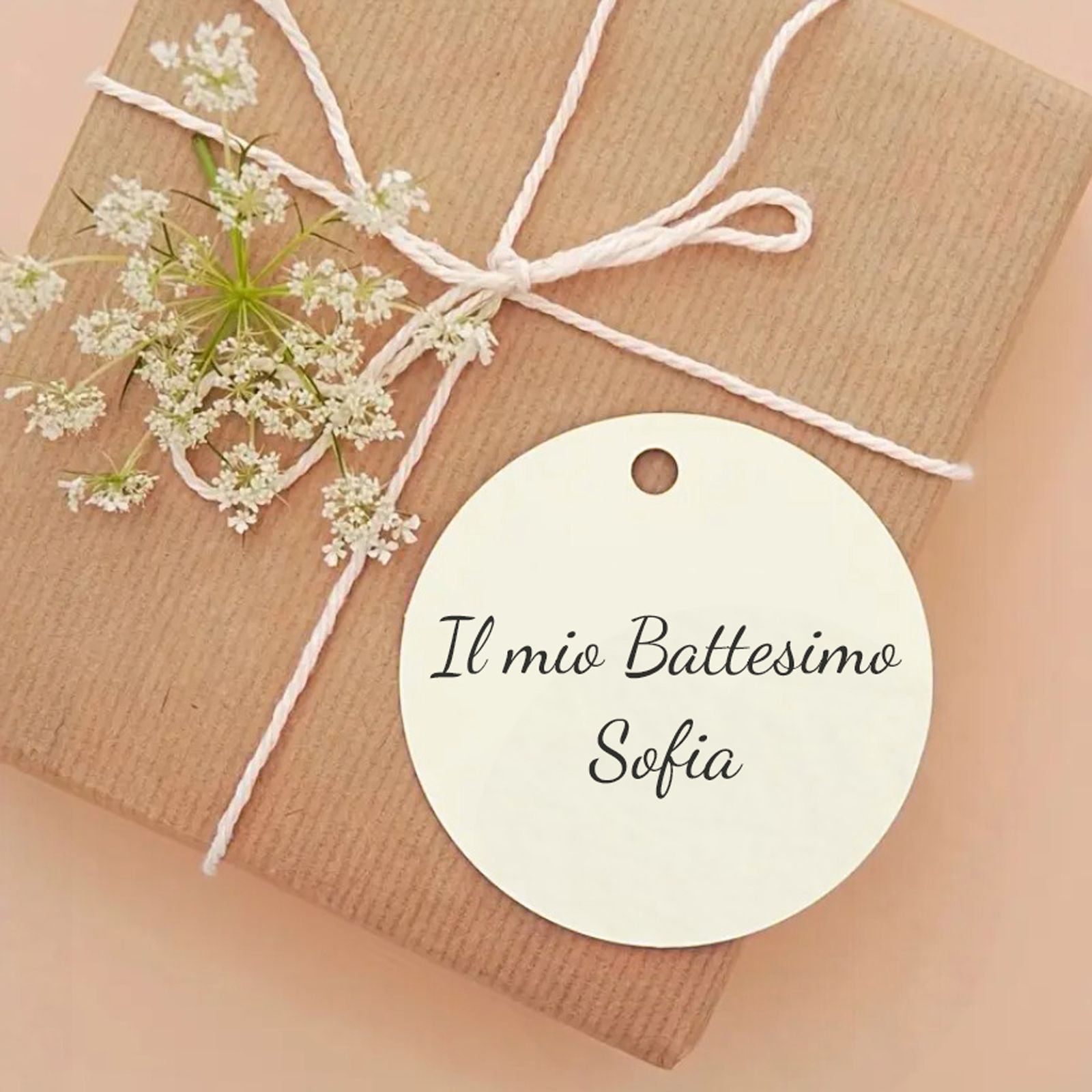 Completa le tue bomboniere con un dettaglio elegante e versatile: questo tag forato tondo è perfetto per ogni evento, dalla nascita al battesimo, dalla comunione alla cresima, fino a matrimonio e compleanno.