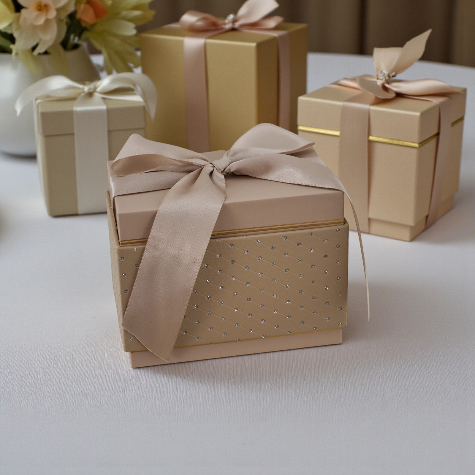 Scoprire la bellezza dei piccoli dettagli può fare la differenza in un evento speciale. La nostra scatola rettangolare impreziosita da strass e raffinati dettagli in oro è molto più di un semplice contenitore: è un vero e proprio simbolo di eleganza e amore. Perfetta per racchiudere i vostri regali o dolci pensieri, è l’ideale per rendere indimenticabili eventi come matrimoni, anniversari, comunioni, cresime e battesimi.