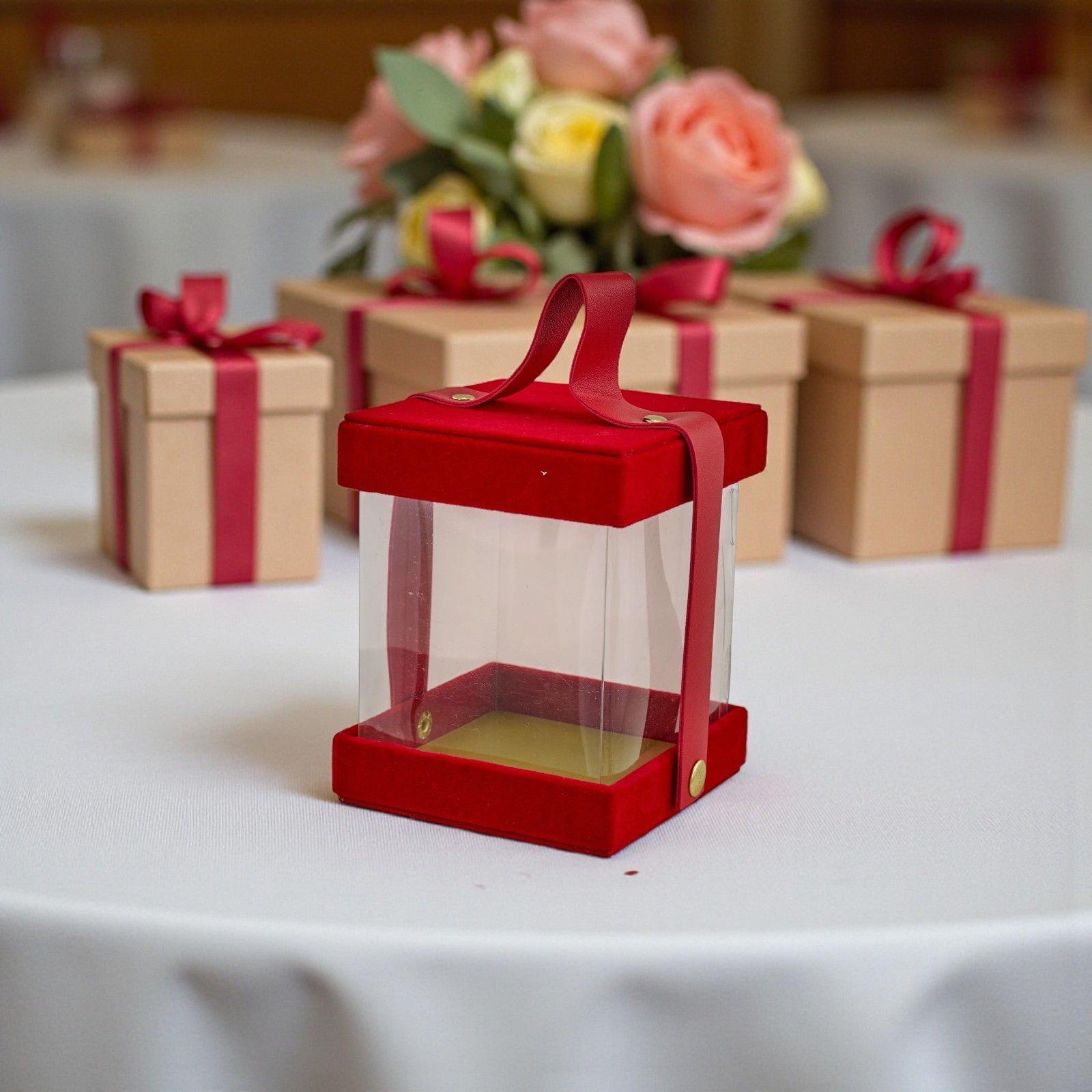 Scopri la bellezza della scatola per bomboniera che trasforma ogni evento in un momento indimenticabile. Questa originale scatola quadrata, con una parte centrale trasparente, è perfetta per racchiudere i tuoi sogni e le tue emozioni, rendendo ogni bomboniera un pezzo unico e speciale. Il suo coperchio e la base rossa non solo richiamano l'attenzione, ma simboleggiano anche l'amore e la passione che metti nei tuoi regali.