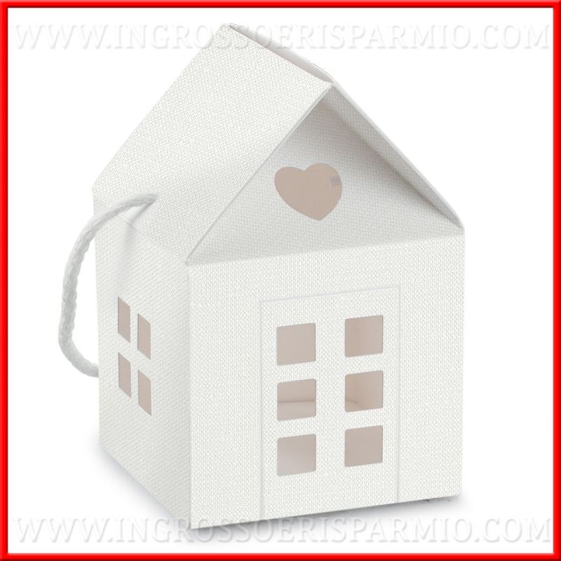 Scatoline a forma di casetta per bomboniere fai da te: inserisci la tua bomboniera in un'originale box casetta con manico, per una presentazione speciale!